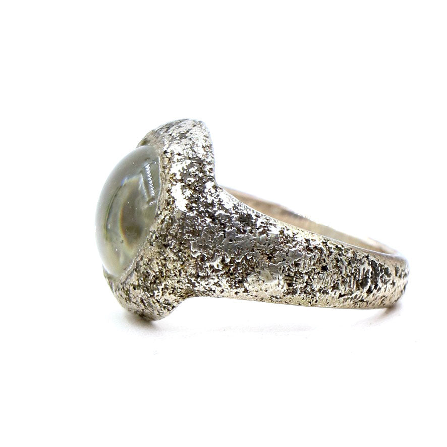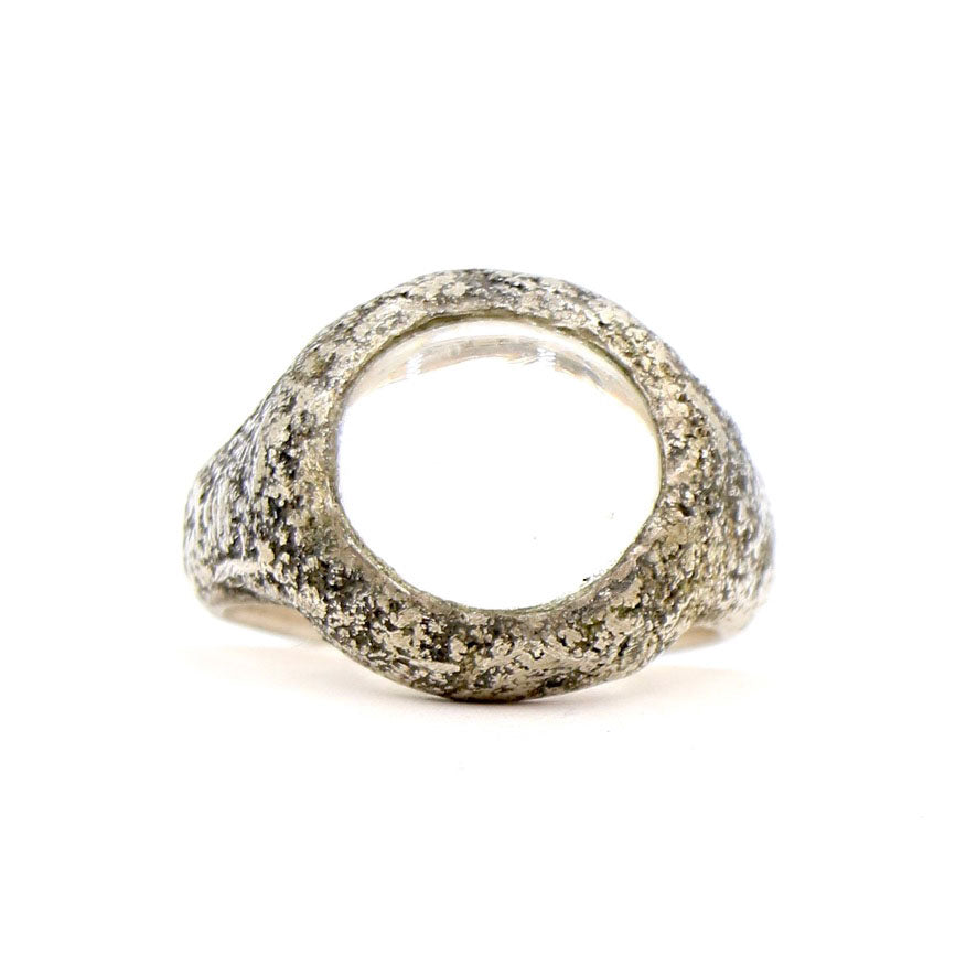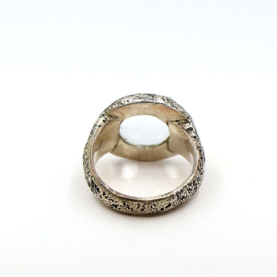 A lovely LoU classic with his textured band and a wonderful clear glass billet inset. His signature is stamped on the inside of this wonderful LoU band