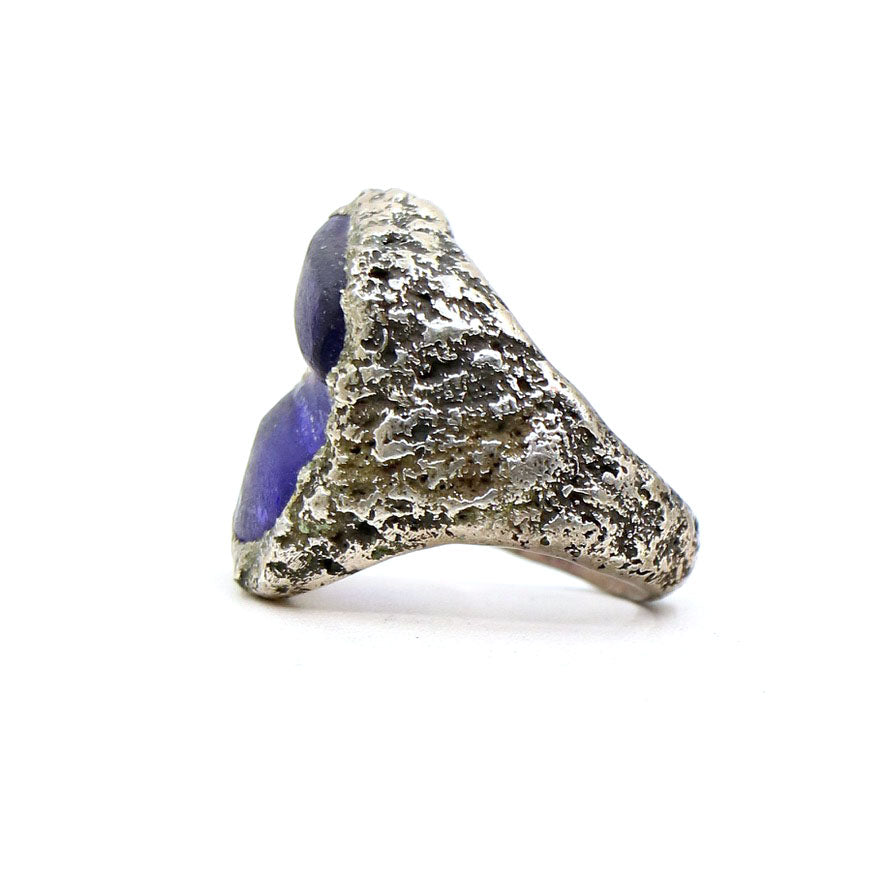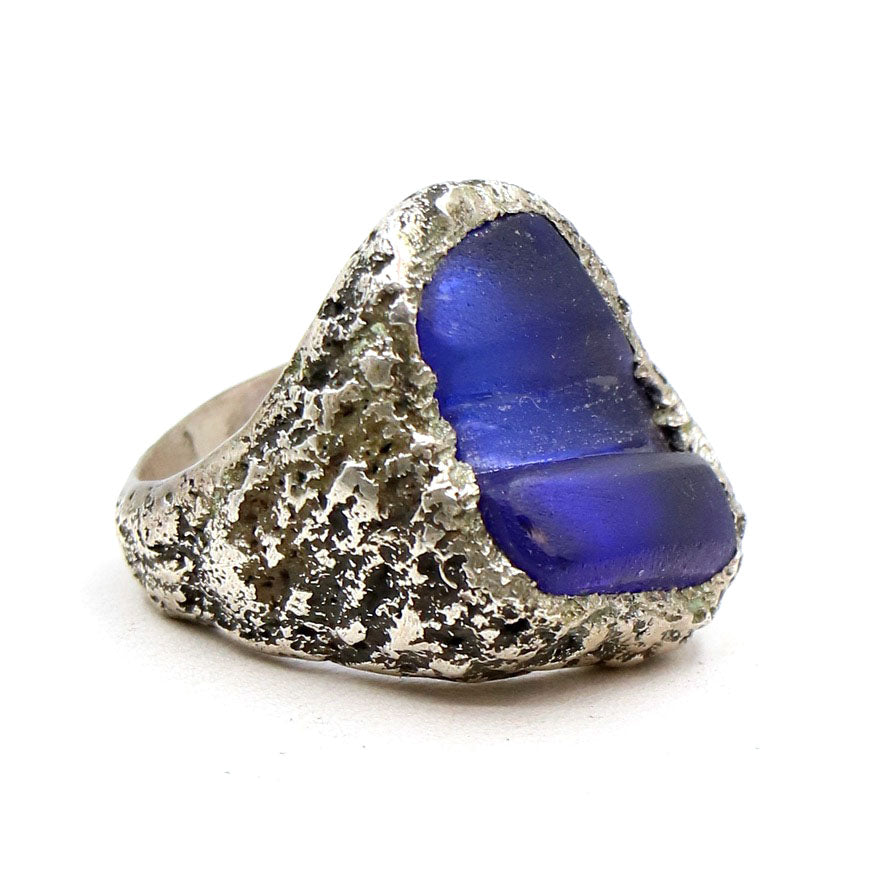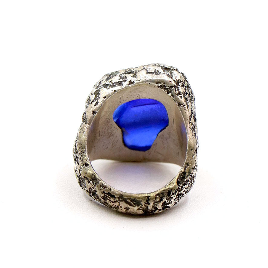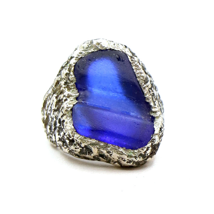One of LoU's most sought after designs... his bottleneck rings and this one being cobalt blue is even more of a collectable treasure. Set in a textured sterling silver band and the shape feels wonderful on the hand. Perhaps the only one remaining in the collection.