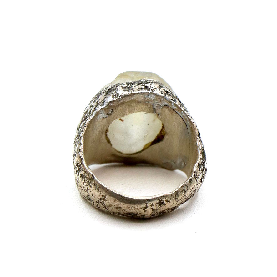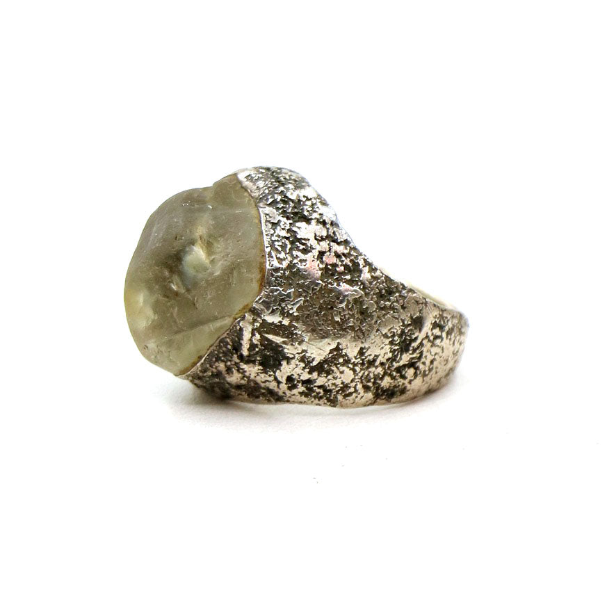A fabulous smokey topaz that LoU has set in his wonderful textured sterling silver band. The topaz has a great subtle sheen and is the perfect pinky ring given its shape and small size. A treasure from the collection and most certainly a one of a kind LoU.