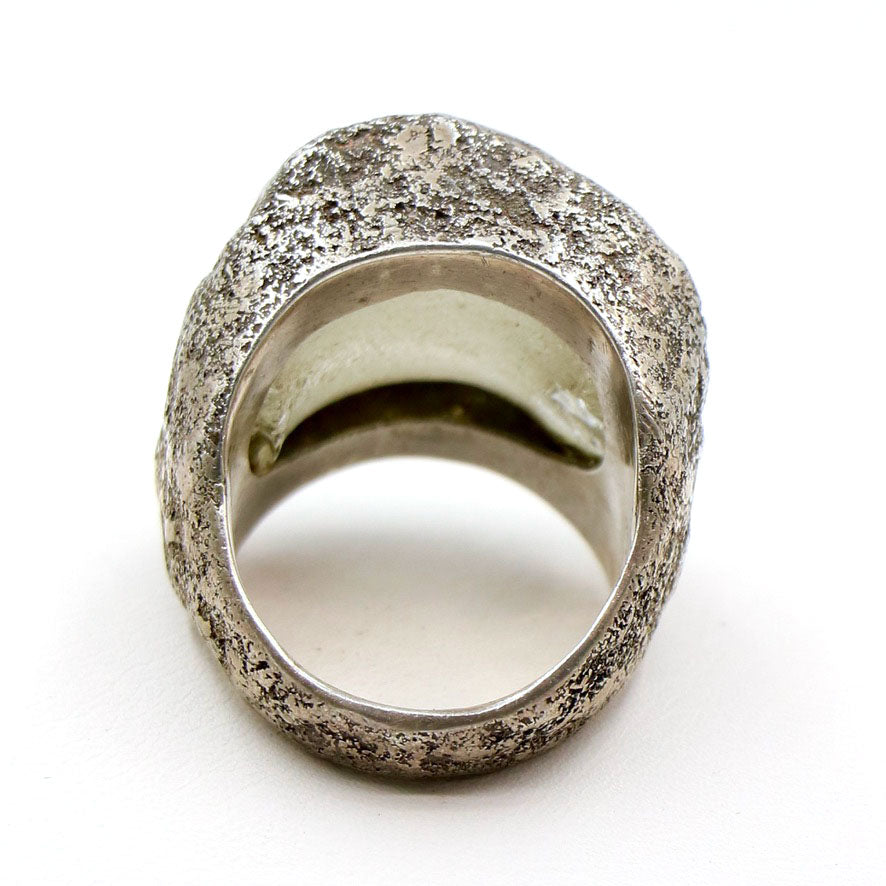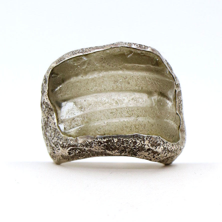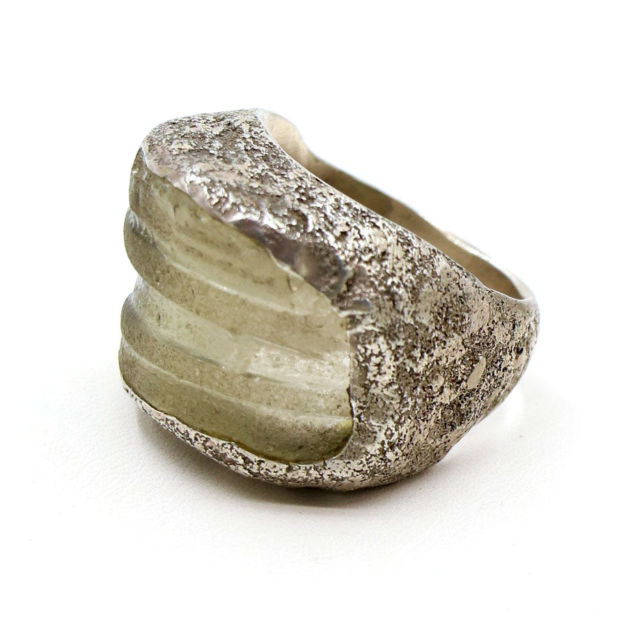 A glorious bottle neck ring that LoU has set inside a textured sterling silver band. These are one of the only larger bottle neck rings remaining in the collection. It feels wonderful on the hand and this series is sought after far and wide. A true LoU treasure.