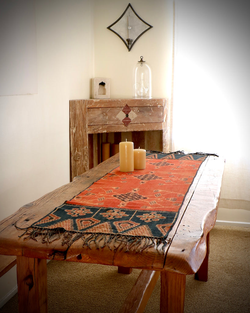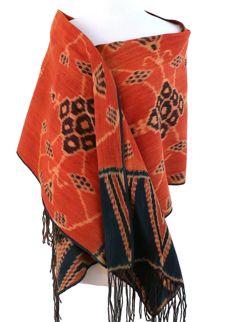 A one of a kind traditional ikat dyed with all natural dyes and woven entirely by hand in the Indonesian islands. These textiles were created in the late 20th century and early 21st century and have been safely stored away in LoU's collection for over 20 years. This treasured textile can be used in its original form or incorporated into pillows &/or used in other applications as desired. These beautiful vintage ikats are true collectables.