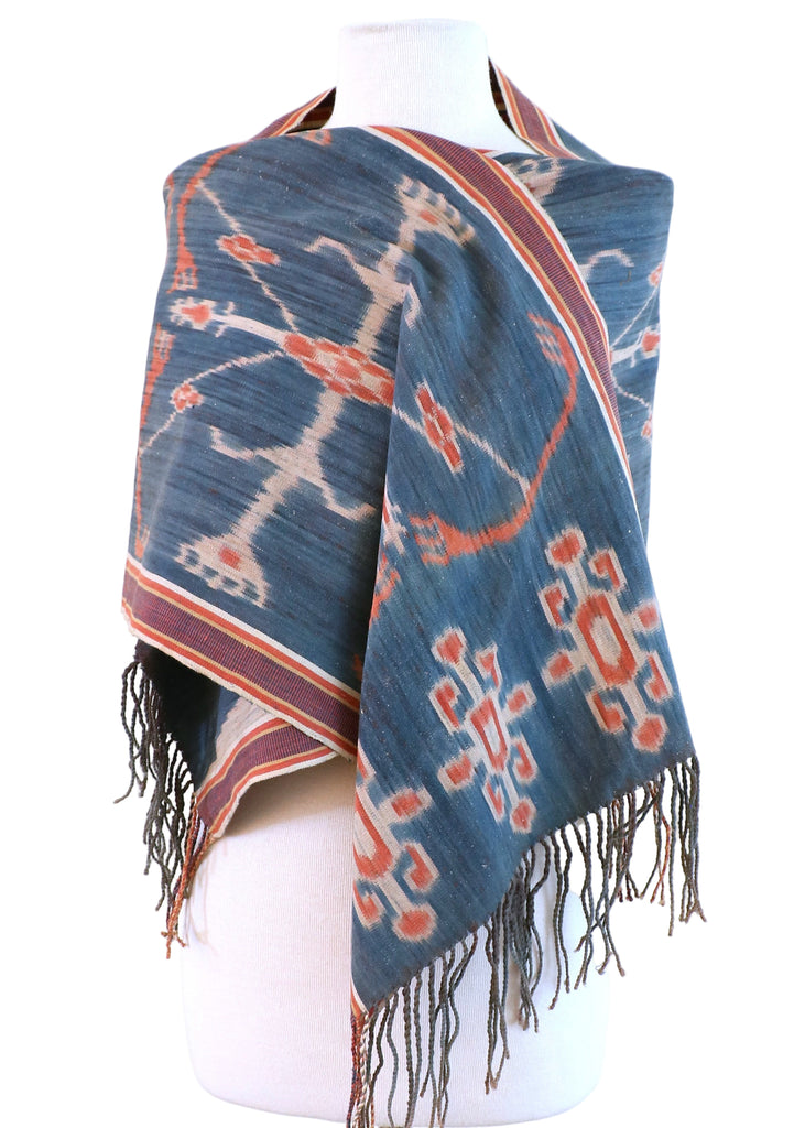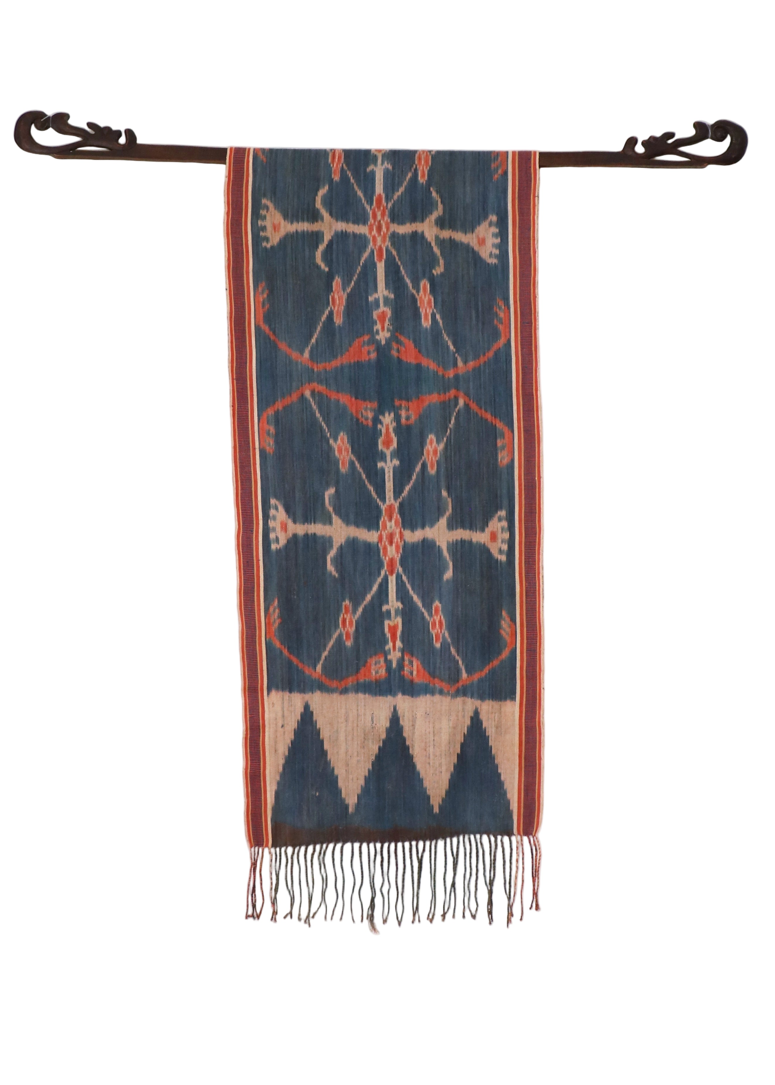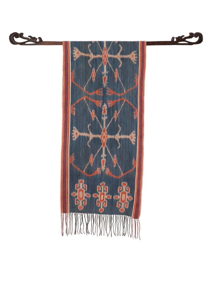 A one of a kind traditional ikat dyed with all natural dyes and woven entirely by hand in the Indonesian islands. These textiles were created in the late 20th century and early 21st century and have been safely stored away in LoU's collection for over 20 years. This treasured textile can be used in its original form or incorporated into pillows &/or used in other applications as desired. These beautiful vintage ikats are true collectables.