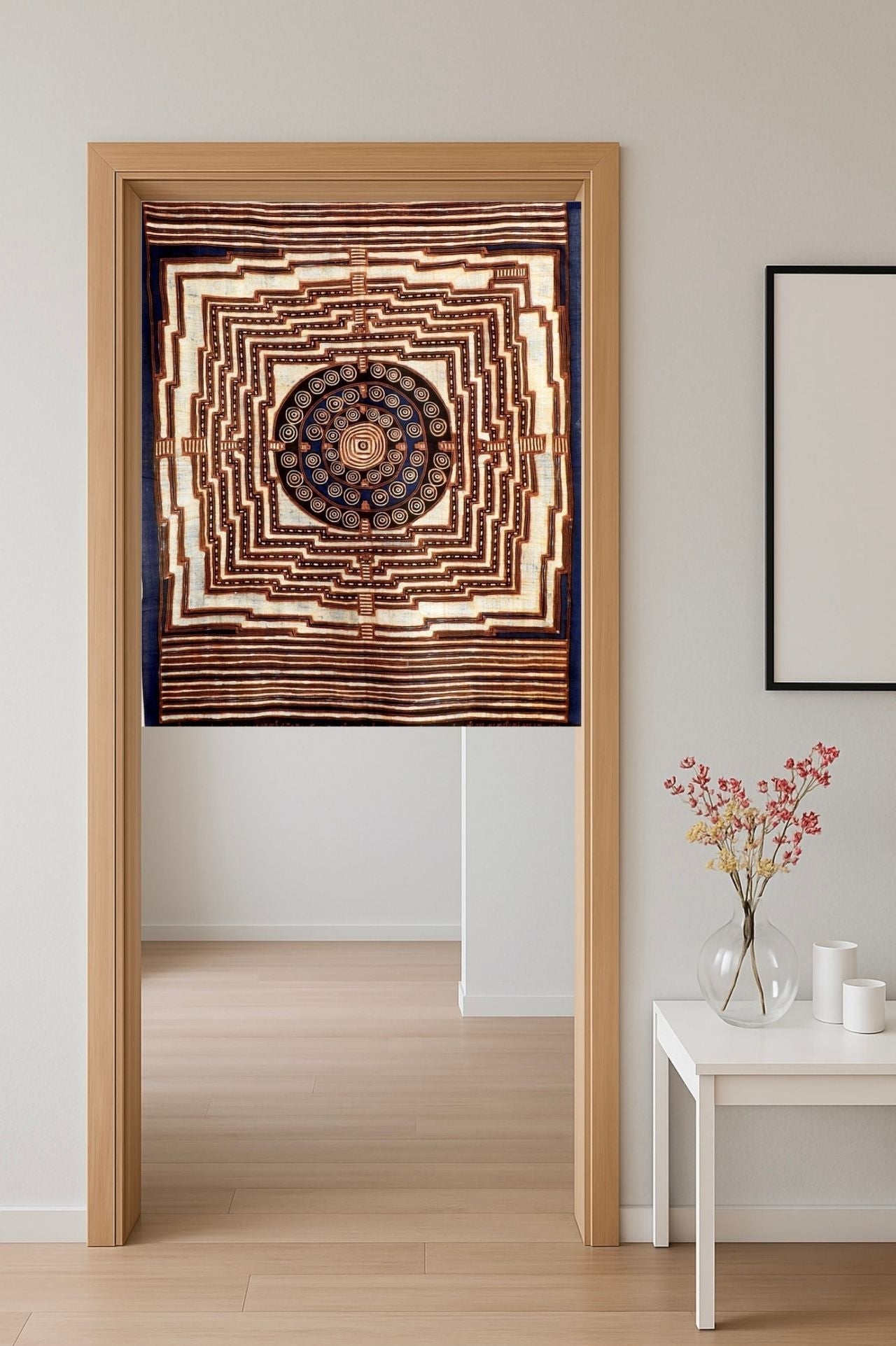 The noren is a traditional Japanese textile that can be used as a room divider or decorative element. They are placed in doorways both inside and outside. They assist in climate control, privacy and their movement can also keep the bugs out. LoU having grown up in Japan has taken this tradition and worked them into his batik designs utilizing all natural indigo and soga dyes to create these exquisite contemporary design motifs. They can also be hung directly on the wall as works of art.