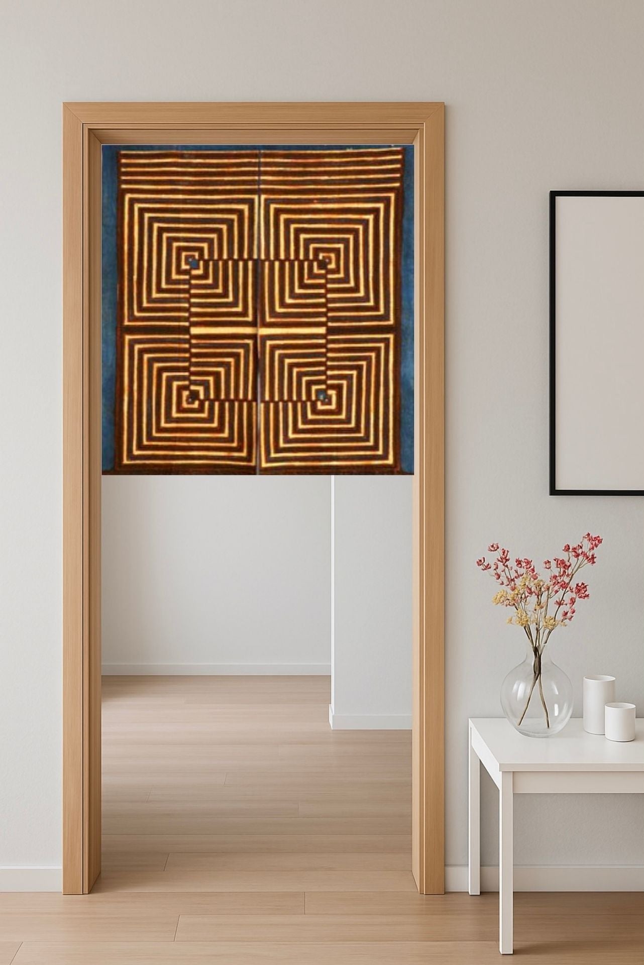 If incorporating these norens into your door or window, we recommend measuring the width of the desired destination so to be certain they will fit. All of these noren have a hand sewn top channel that will fit a thin rod with which to hang them. Hardware not included.