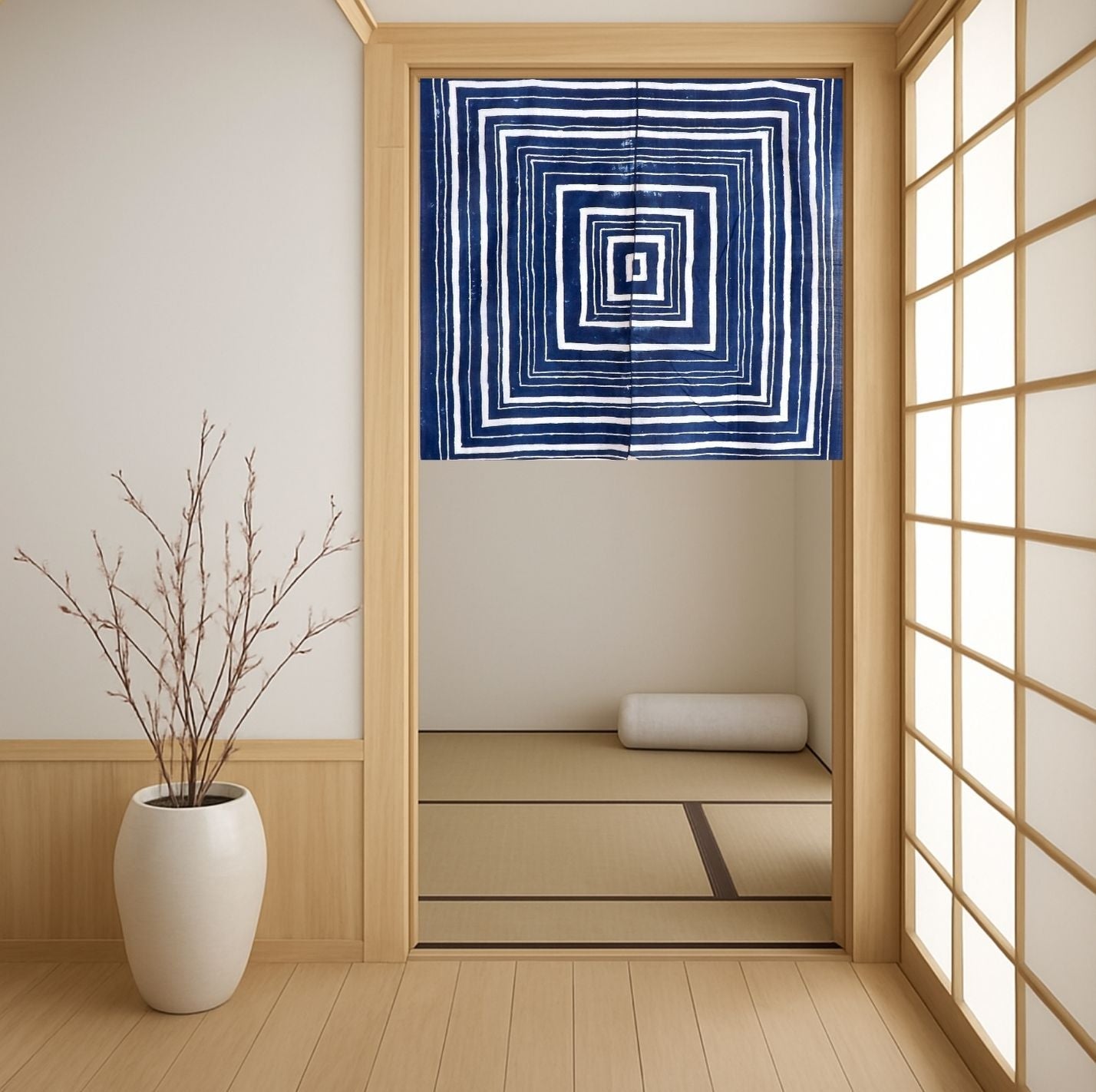 Split Noren Total Dimensions: ( length x width ) 33.5 x 36.5 in / 85 x 93 cm