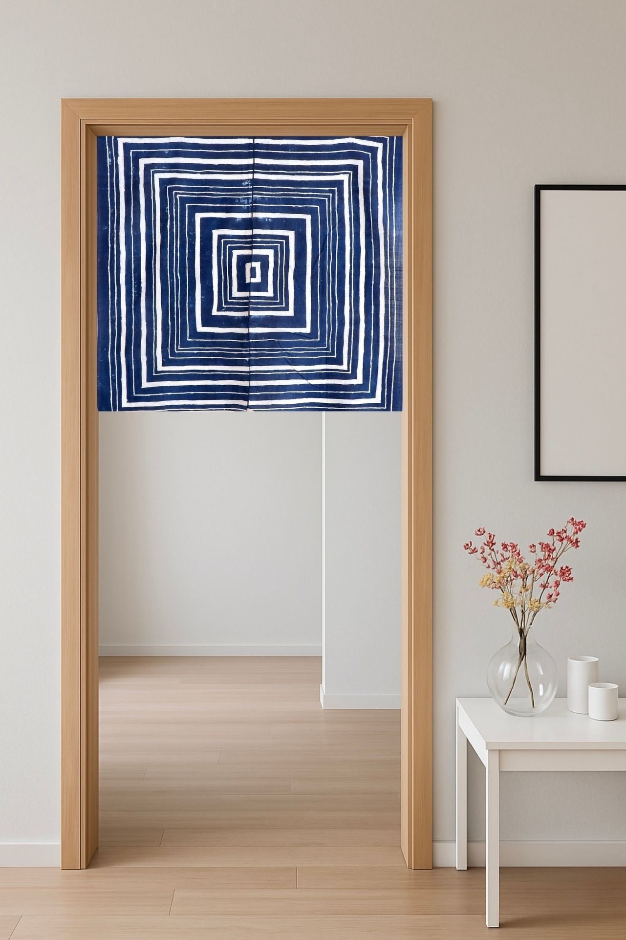 If incorporating these norens into your door or window, we recommend measuring the width of the desired destination so to be certain they will fit. All of these noren have a hand sewn top channel that will fit a thin rod with which to hang them. Hardware not included.