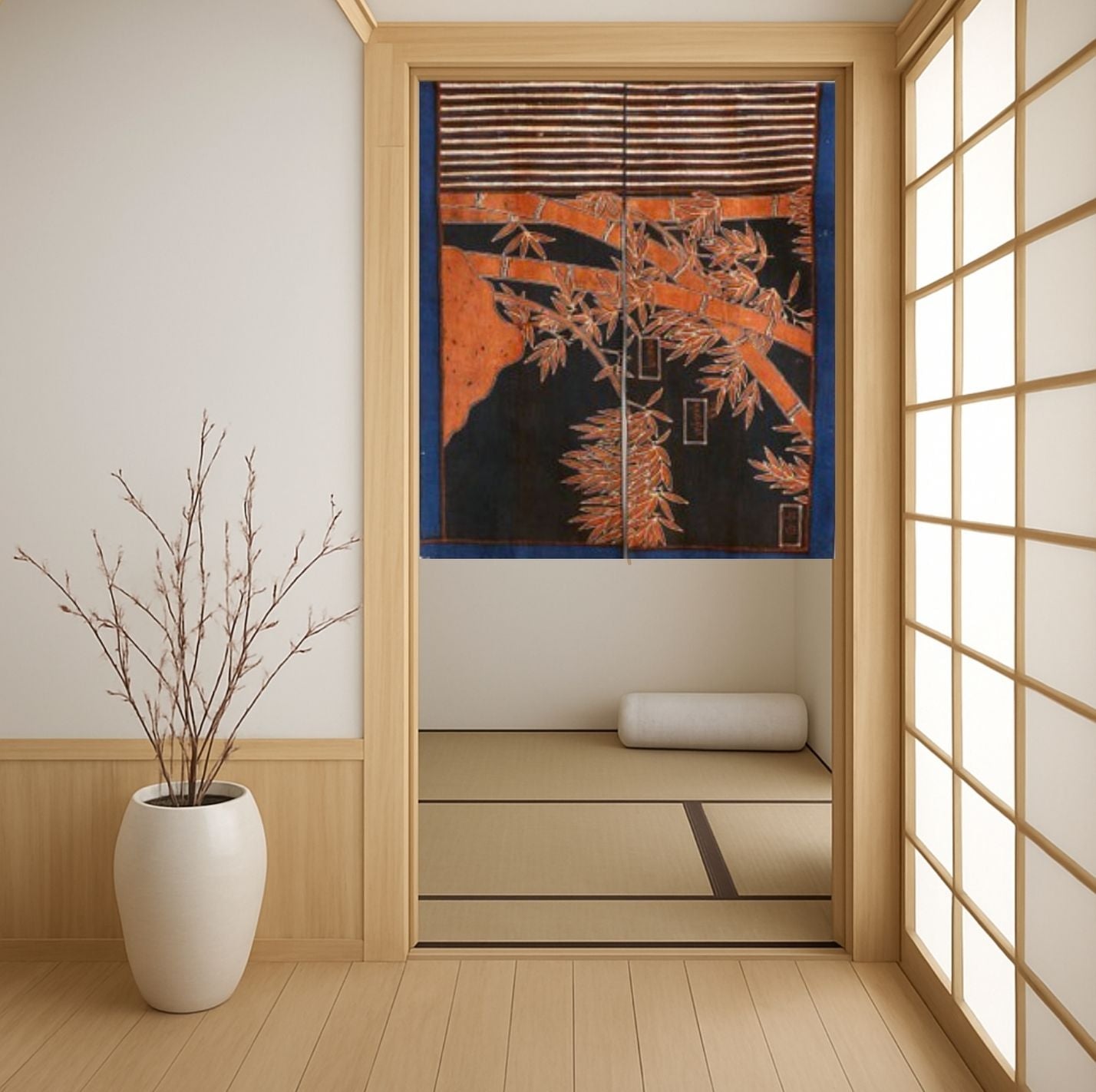 If incorporating these norens into your door or window, we recommend measuring the width of the desired destination so to be certain they will fit. All of these noren have a hand sewn top channel that will fit a thin rod with which to hang them. Hardware not included.