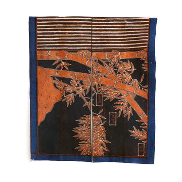 The noren is a traditional Japanese textile that can be used as a room divider or decorative element. They are placed in doorways both inside and outside. They assist in climate control, privacy and their movement can also keep the bugs out. LoU having grown up in Japan has taken this tradition and worked them into his batik designs utilizing all natural indigo and soga dyes to create these exquisite contemporary design motifs. They can also be hung directly on the wall as works of art.