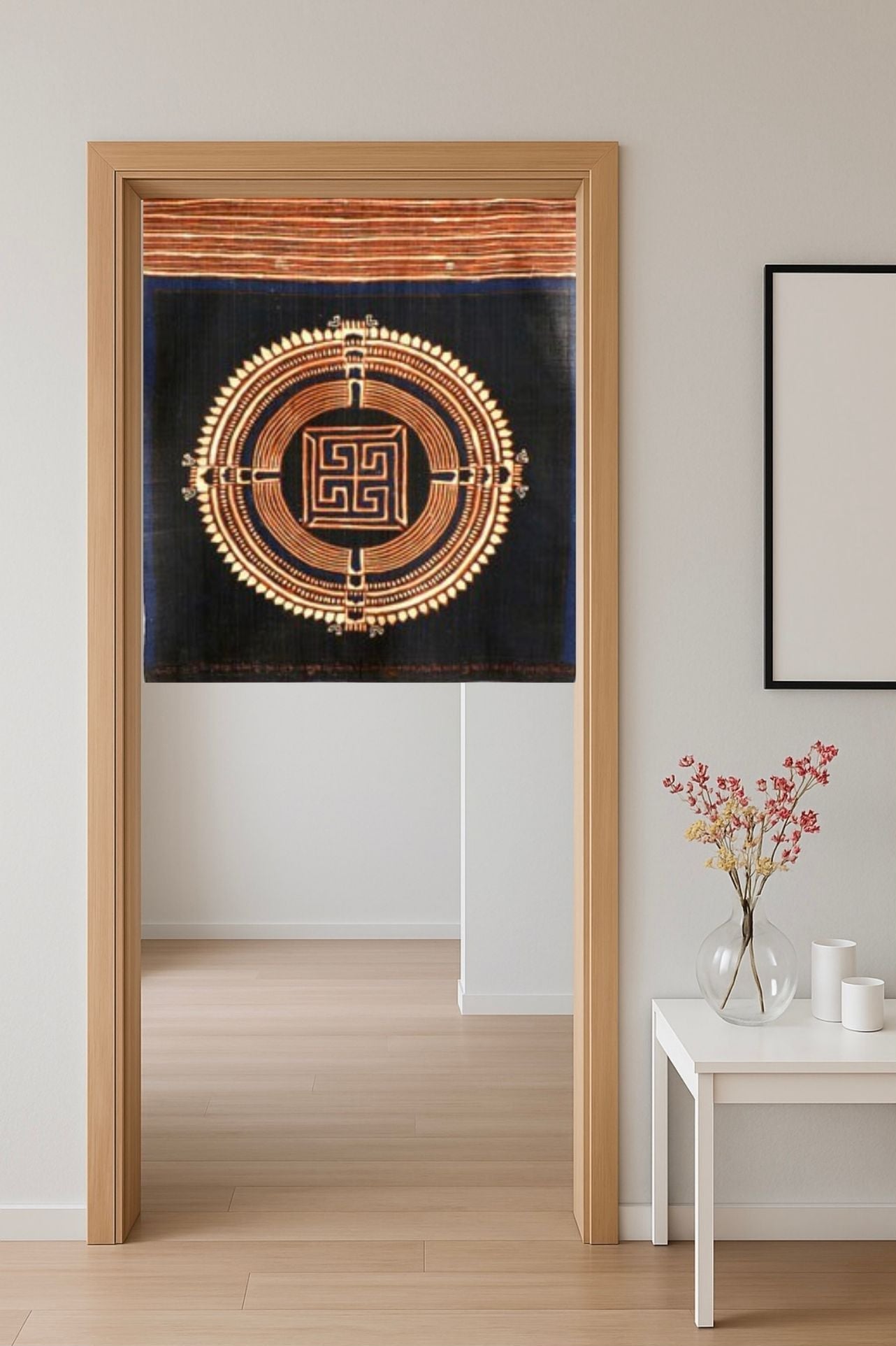 The noren is a traditional Japanese textile that can be used as a room divider or decorative element. They are placed in doorways both inside and outside. They assist in climate control, privacy and their movement can also keep the bugs out. LoU having grown up in Japan has taken this tradition and worked them into his batik designs utilizing all natural indigo and soga dyes to create these exquisite contemporary design motifs. They can also be hung directly on the wall as works of art.