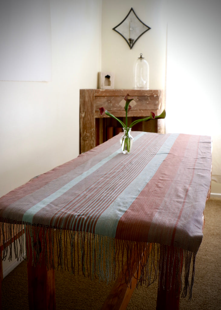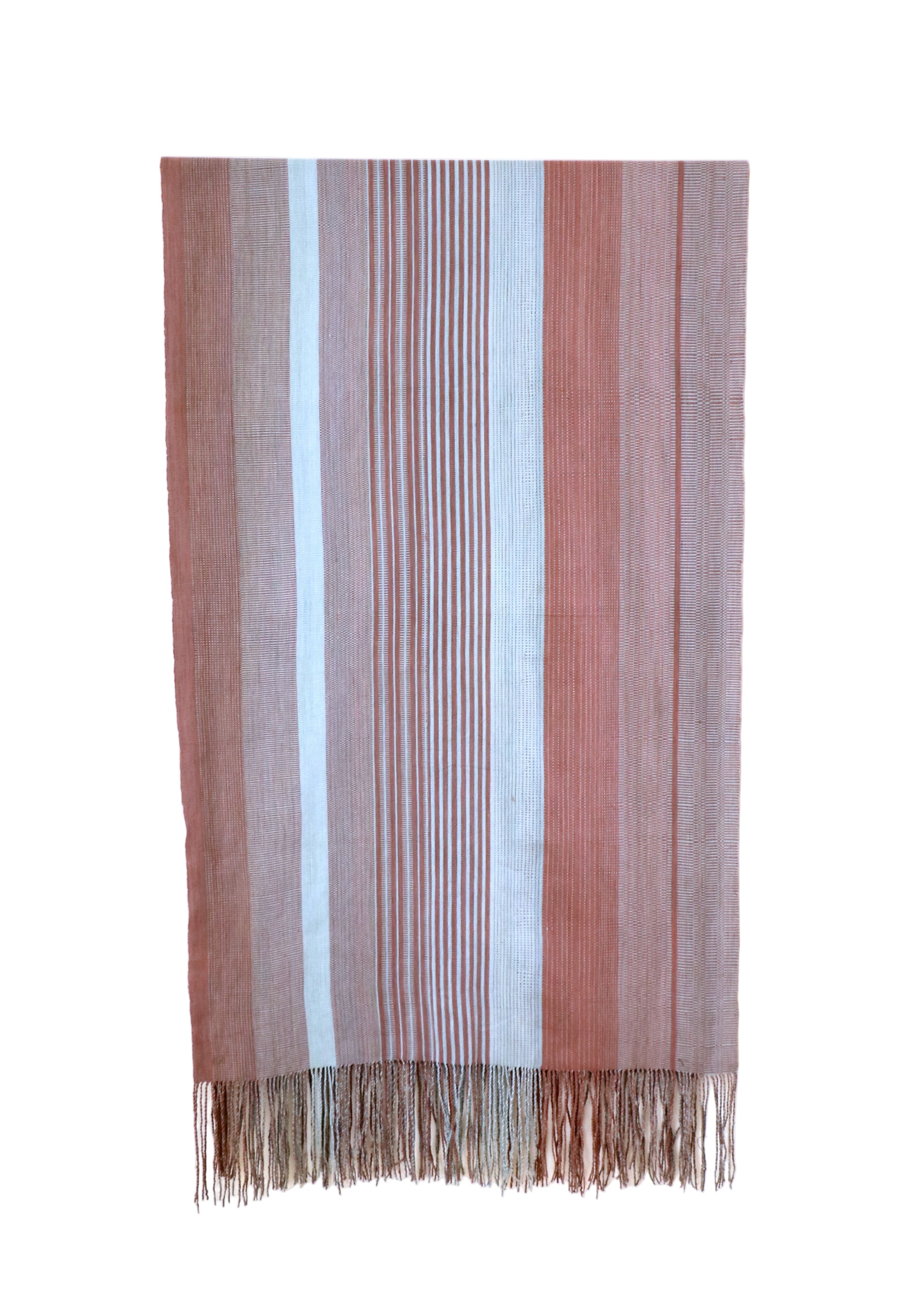 This textile from the collection was designed by LoU. Entirely hand woven and dyed in various locations throughout the Indonesian islands. LoU was inspired by the beauty and endless variations of the contemporary bar code system used in the process of creating the 'sku tag'