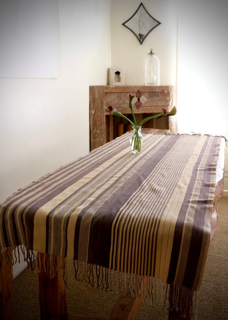This textile from the collection was designed by LoU. Entirely hand woven and dyed in various locations throughout the Indonesian islands. LoU was inspired by the beauty and endless variations of the contemporary bar code system used in the process of creating the 'sku tag'
