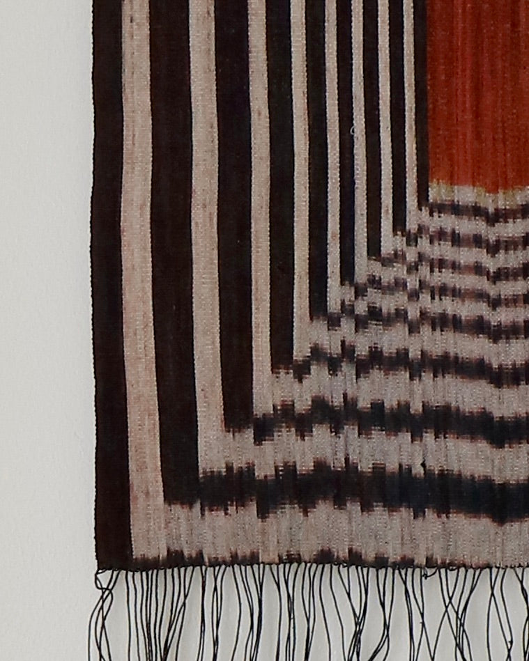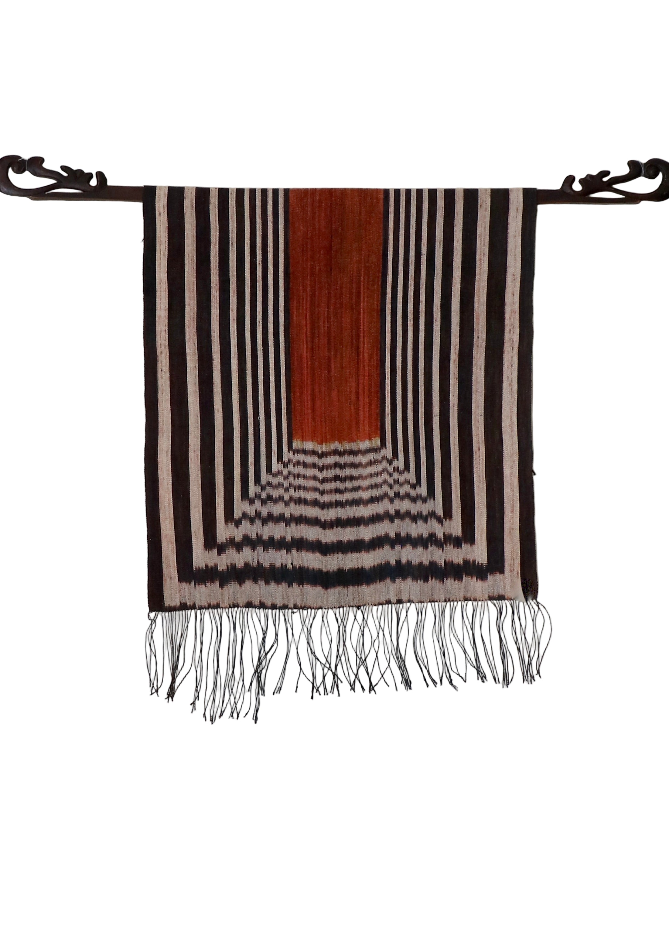 LoU created a beautiful series of ikats entitled 'Portals". They are entirely hand woven and hand dyed with all natural morinda citrifolia and indigo dyes. Woven in the traditional way by master craftsmen on the Indonesian island of Sumba. They are wonderful when used as interior design elements such as wall hangings or bed throws or table runners and can also be worn as a unique fashionable one of a kind wrap or shawl. LoU's modern motifs are innovative and breathtakingly beautiful.