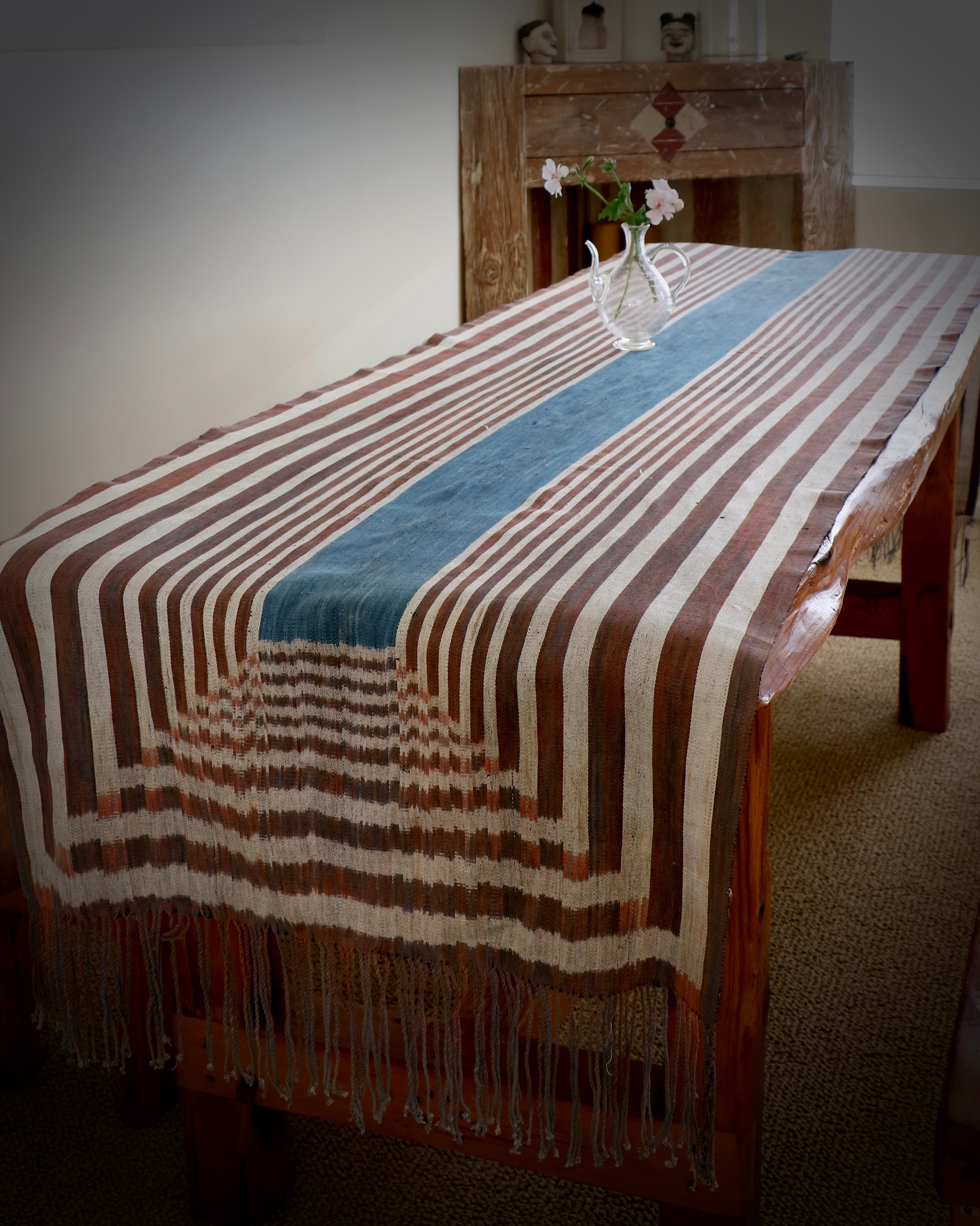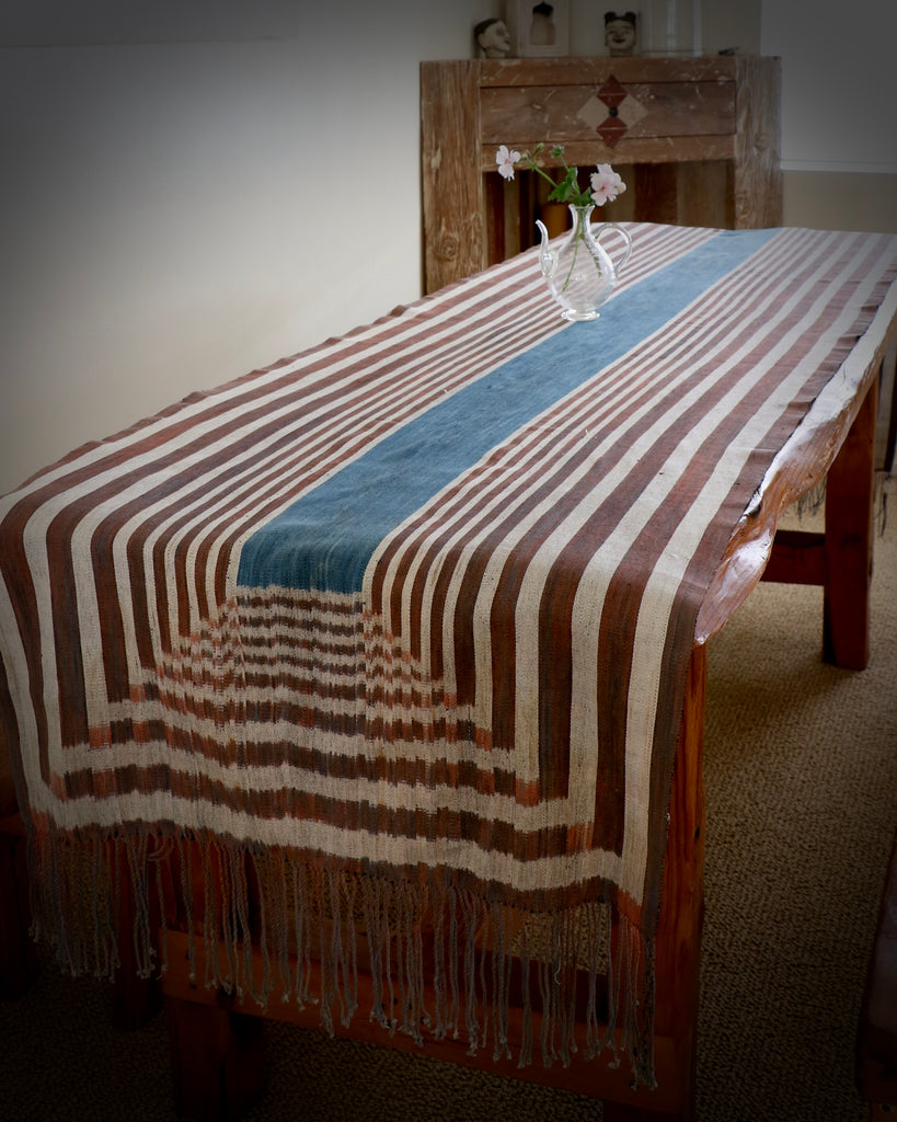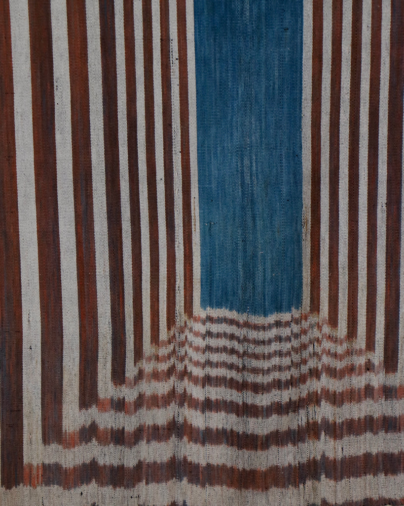 LoU created a beautiful series of ikats entitled 'Portals". They are entirely hand woven and hand dyed with all natural morinda citrifolia and indigo dyes. Woven in the traditional way by master craftsmen on the Indonesian island of Sumba. They are wonderful when used as interior design elements such as wall hangings or bed throws or table runners and can also be worn as a unique fashionable one of a kind wrap or shawl. LoU's modern motifs are innovative and breathtakingly beautiful.