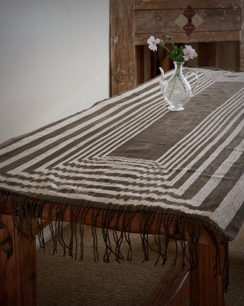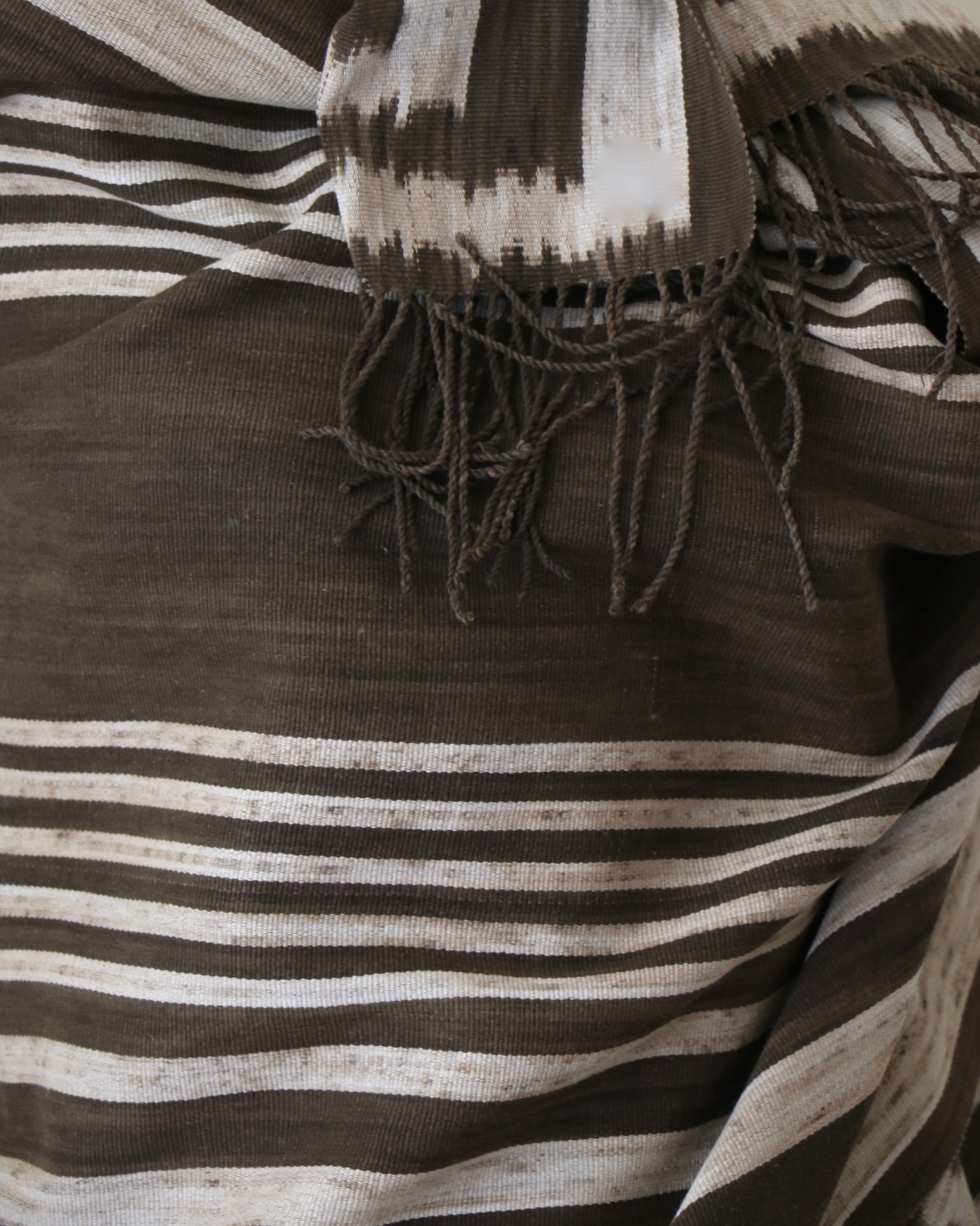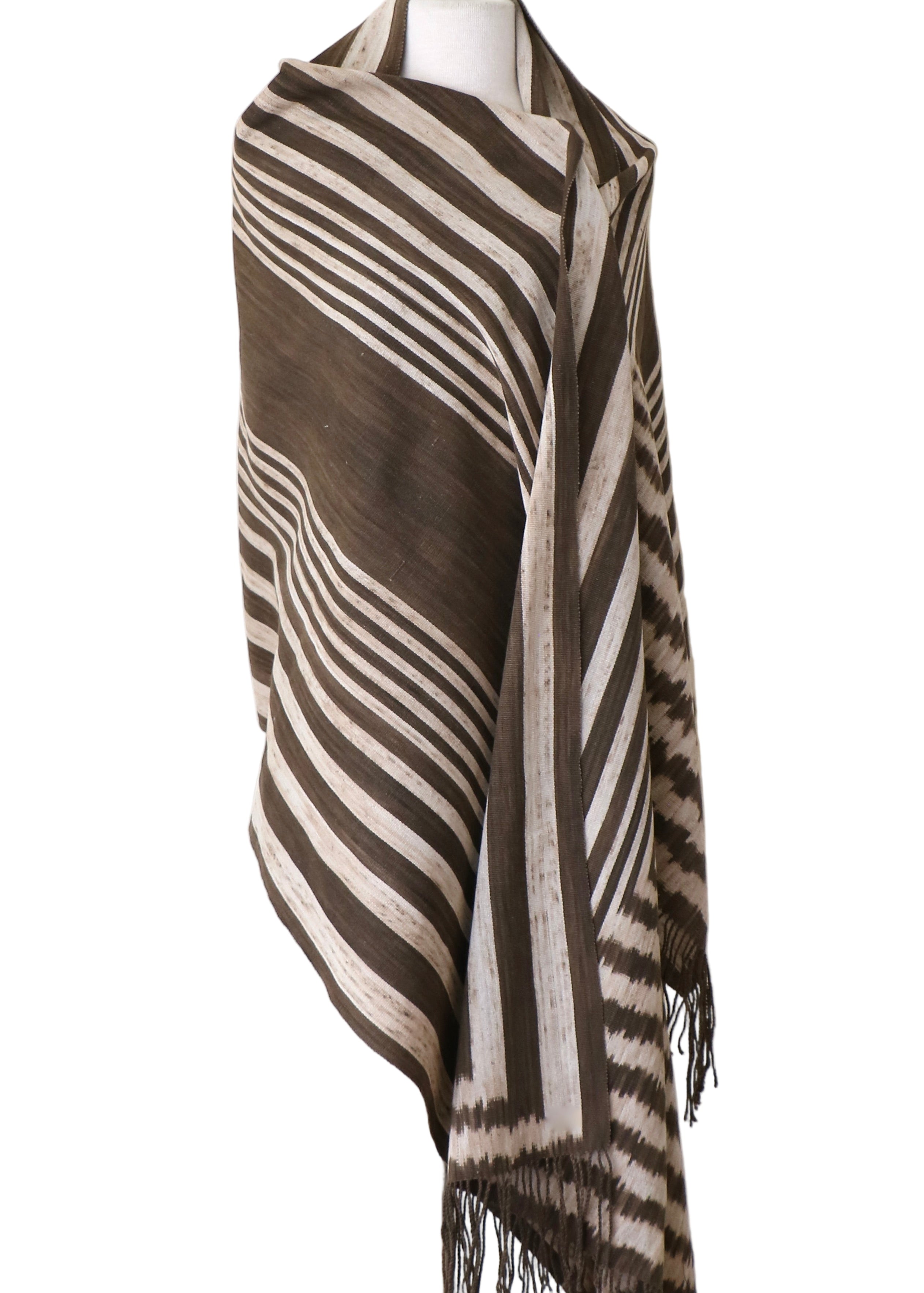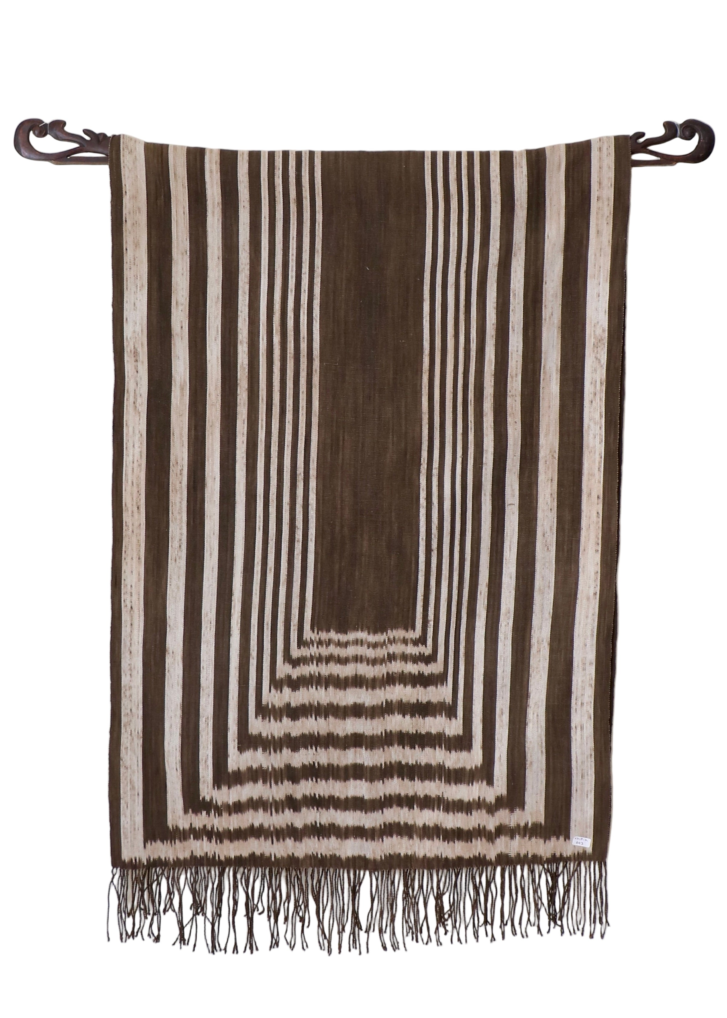LoU created a beautiful series of ikats entitled 'Portals". They are entirely hand woven and hand dyed with all natural morinda citrifolia and indigo dyes. Woven in the traditional way by master craftsmen on the Indonesian island of Sumba. They are wonderful when used as interior design elements such as wall hangings or bed throws or table runners and can also be worn as a unique fashionable one of a kind wrap or shawl. LoU's modern motifs are innovative and breathtakingly beautiful.
