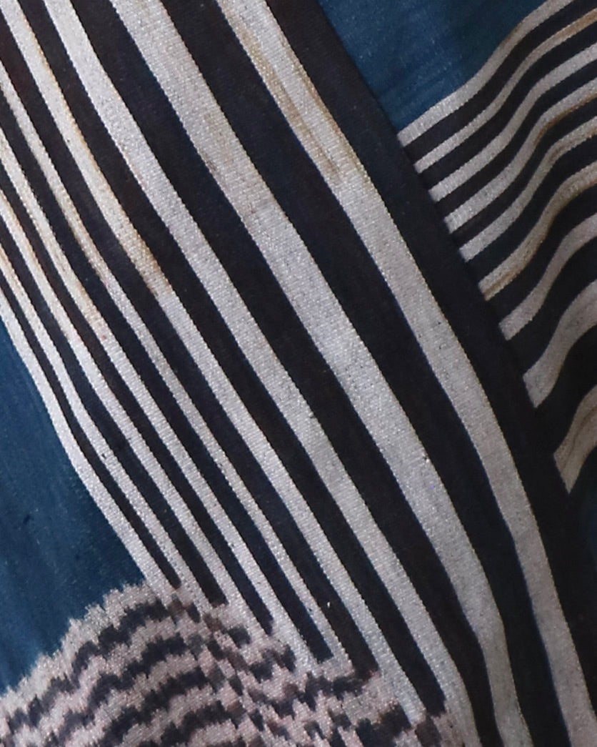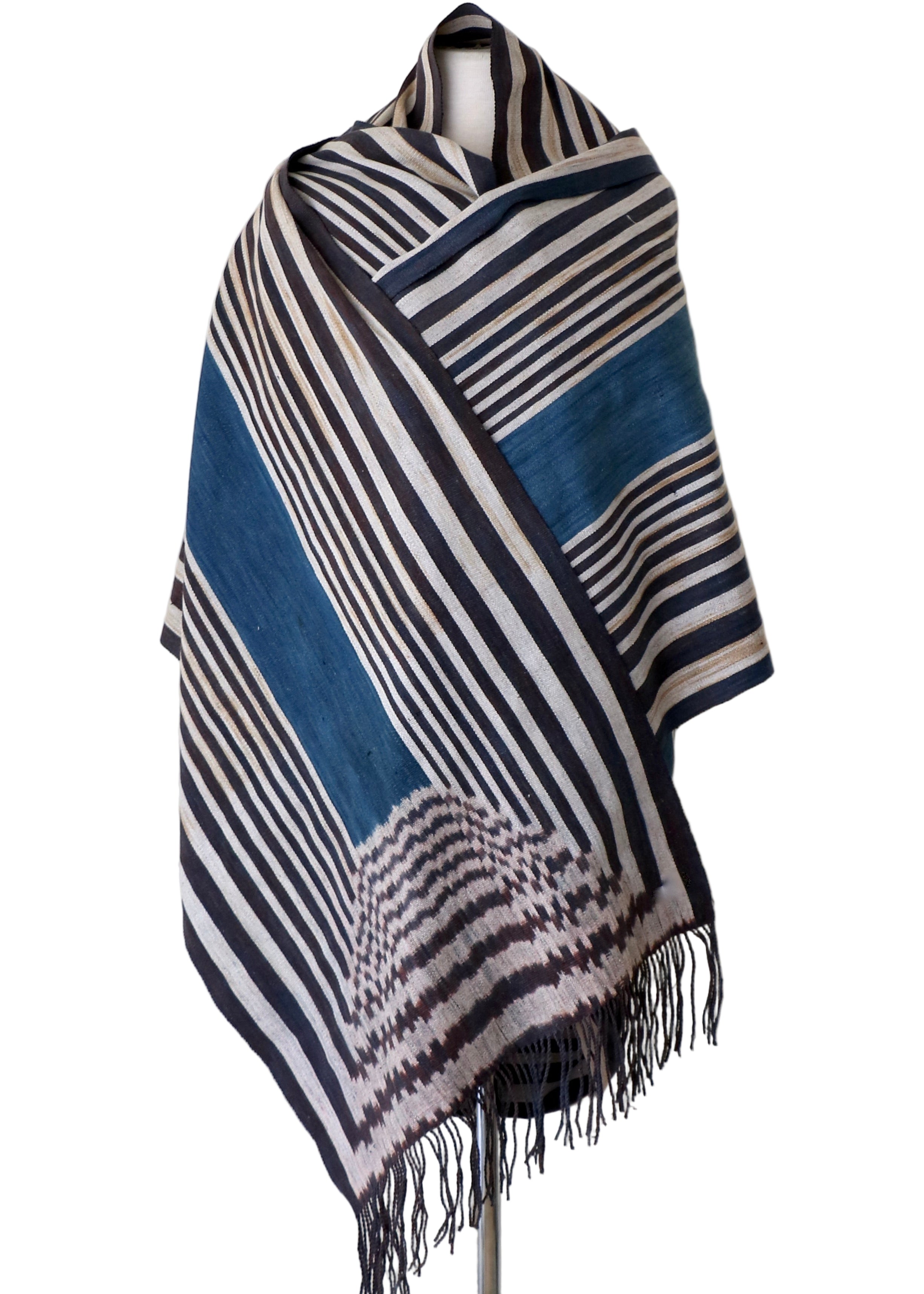LoU created a beautiful series of ikats entitled 'Portals". They are entirely hand woven and hand dyed with all natural morinda citrifolia and indigo dyes. Woven in the traditional way by master craftsmen on the Indonesian island of Sumba. They are wonderful when used as interior design elements such as wall hangings or bed throws or table runners and can also be worn as a unique fashionable one of a kind wrap or shawl. LoU's modern motifs are innovative and breathtakingly beautiful.
