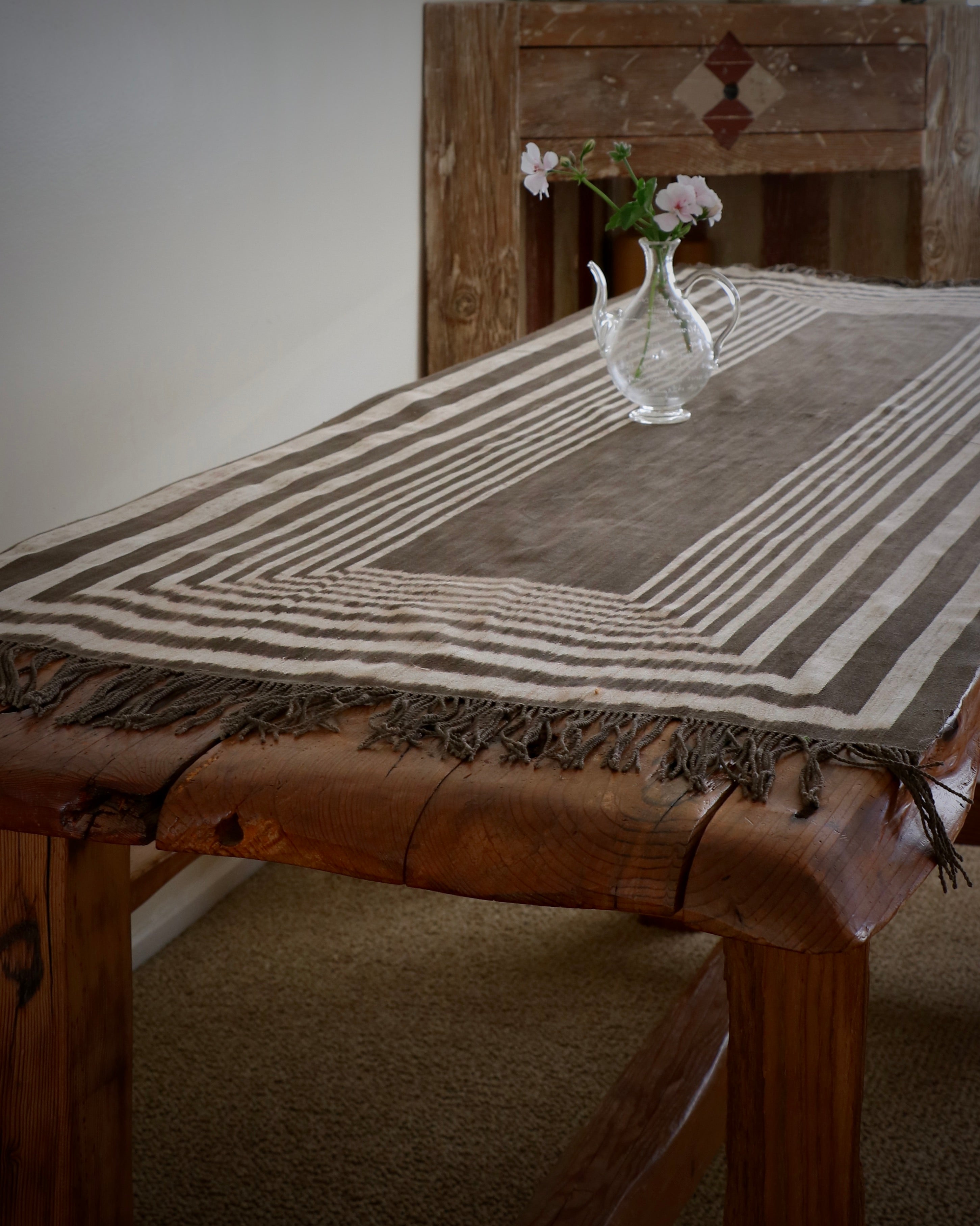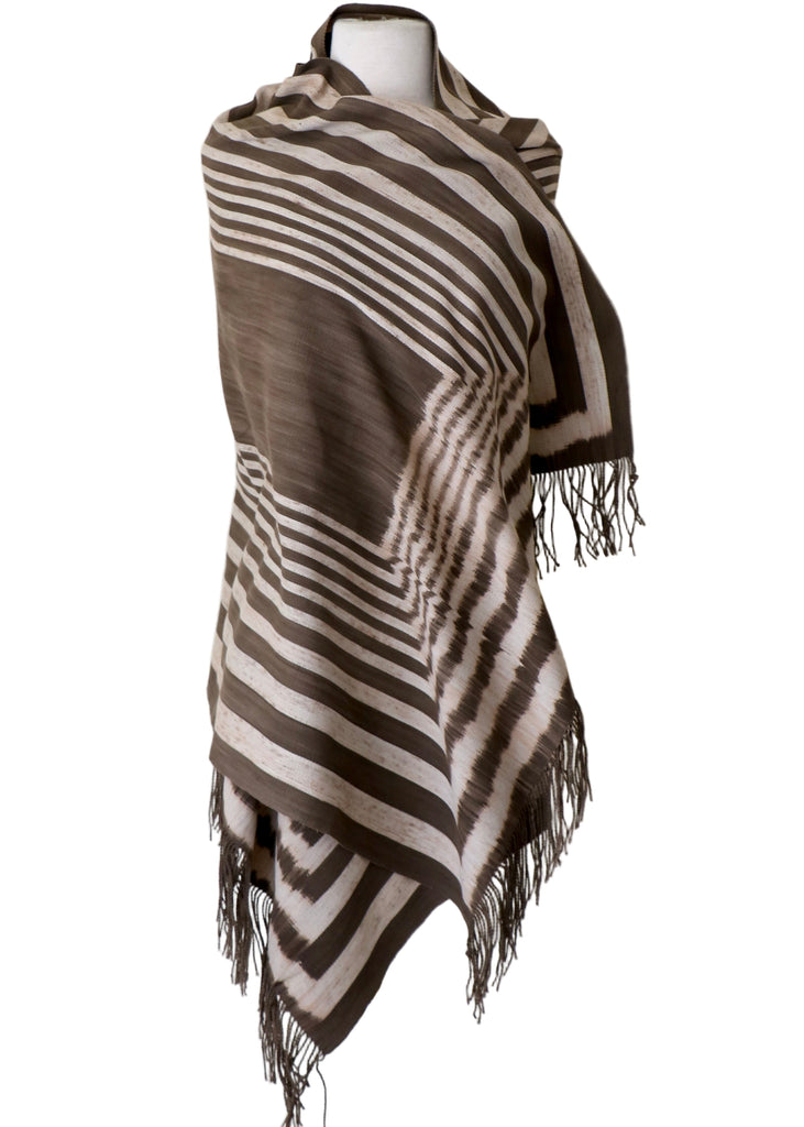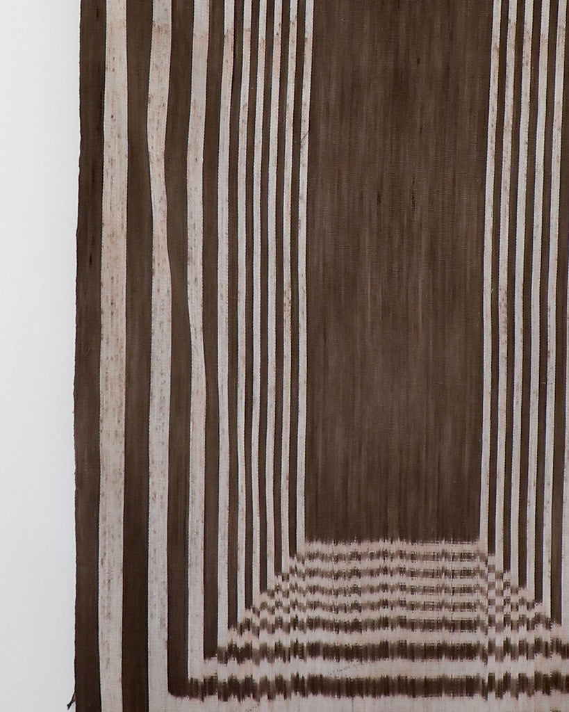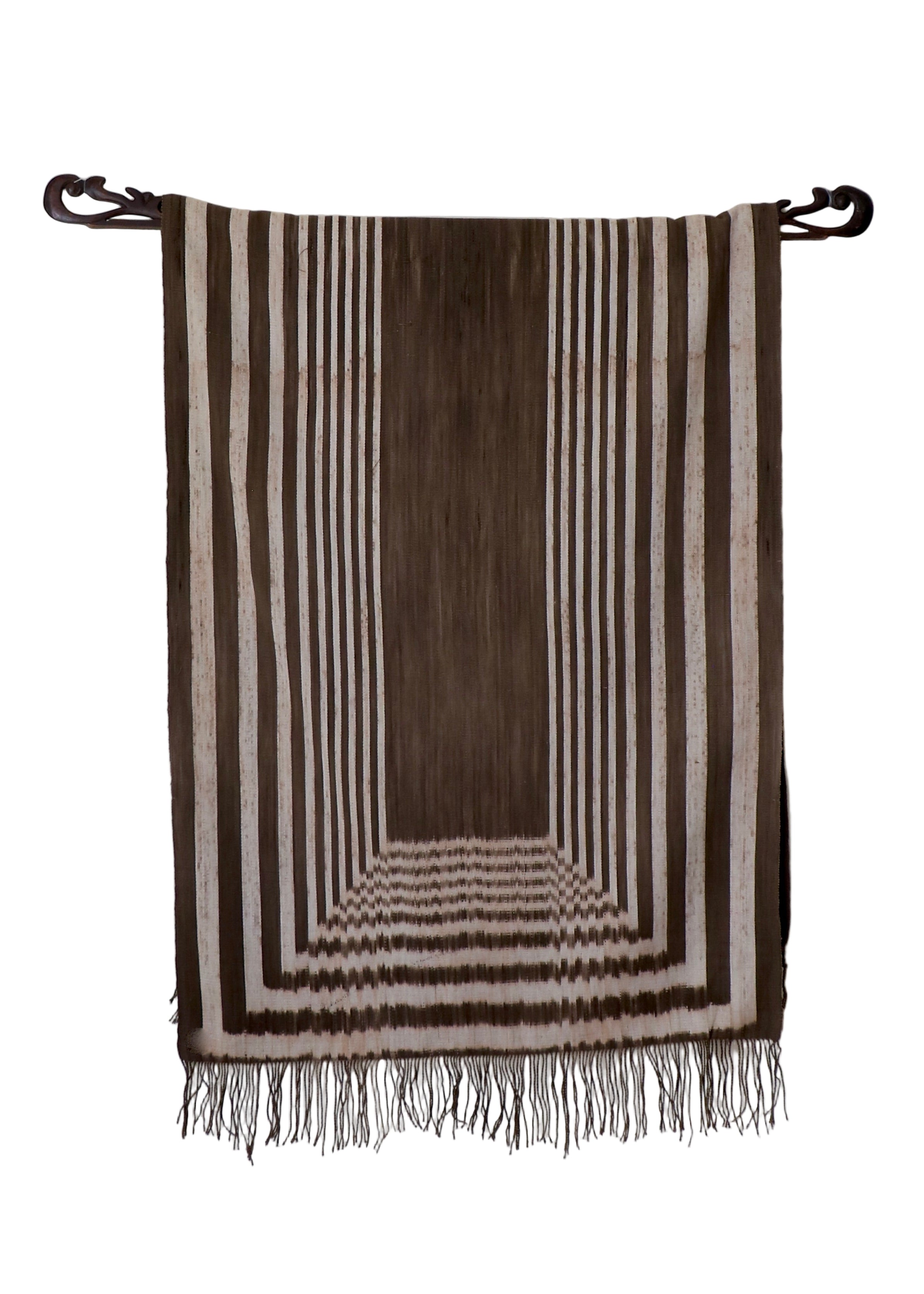 LoU created a beautiful series of ikats entitled 'Portals". They are entirely hand woven and hand dyed with all natural morinda citrifolia and indigo dyes. Woven in the traditional way by master craftsmen on the Indonesian island of Sumba. They are wonderful when used as interior design elements such as wall hangings or bed throws or table runners and can also be worn as a unique fashionable one of a kind wrap or shawl. LoU's modern motifs are innovative and breathtakingly beautiful.