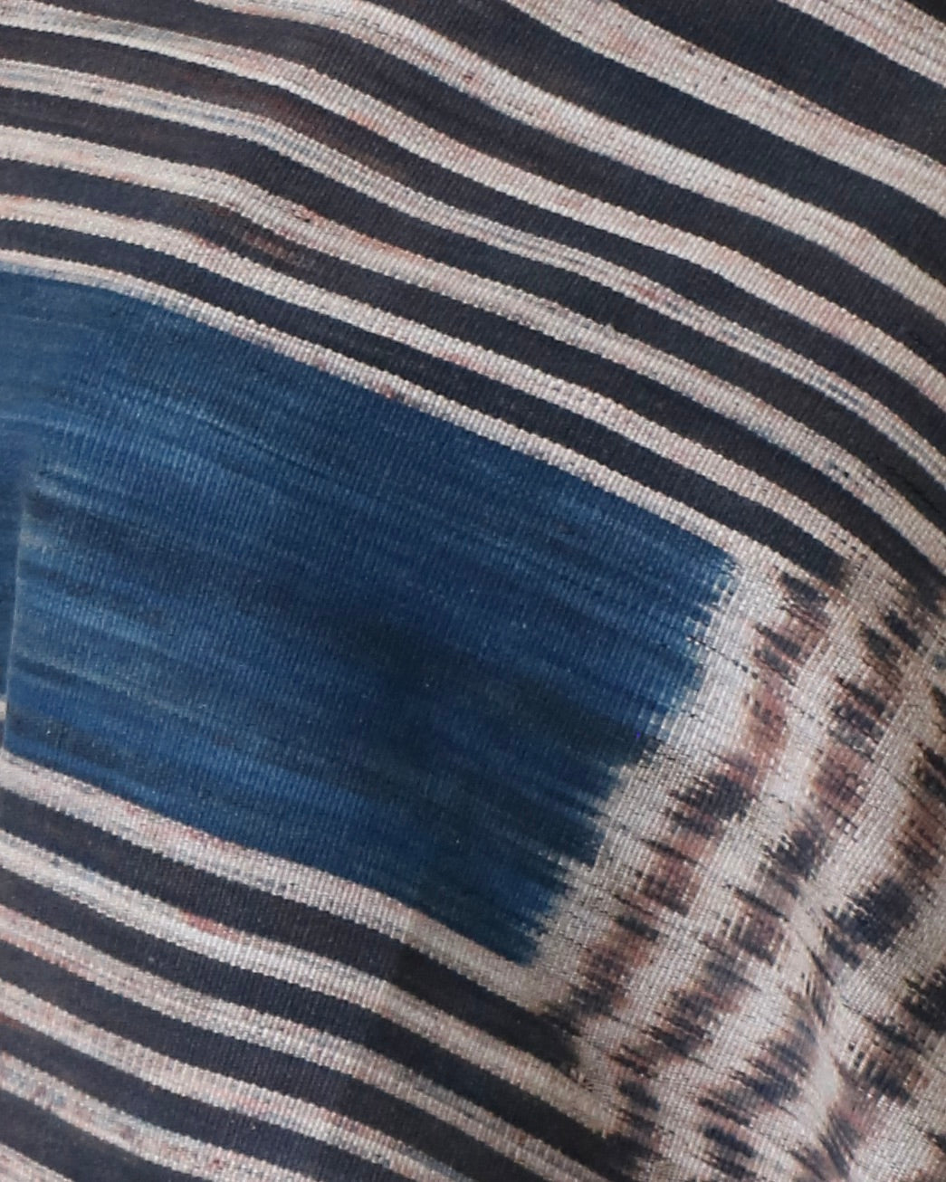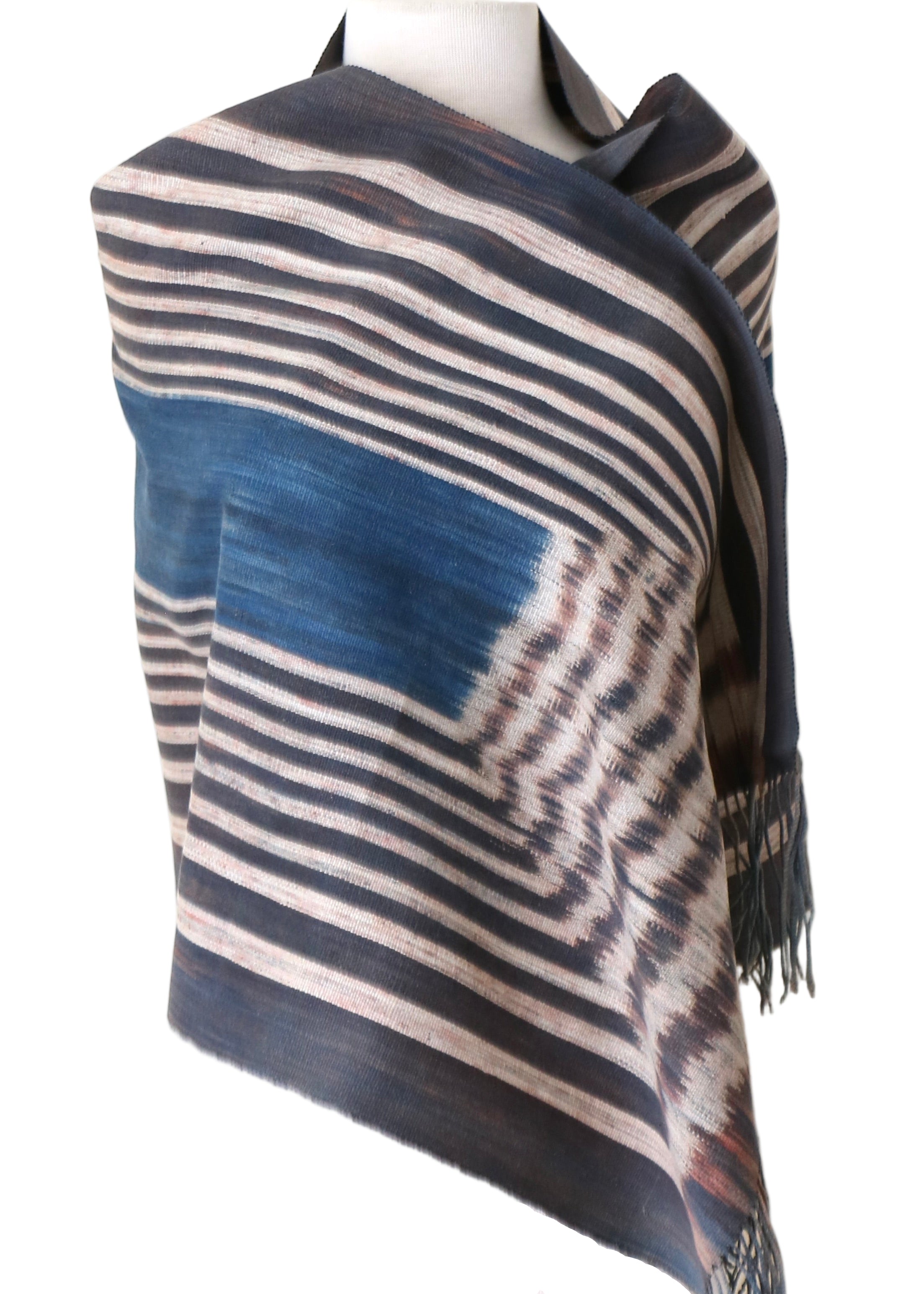 LoU created a beautiful series of ikats entitled 'Portals". They are entirely hand woven and hand dyed with all natural morinda citrifolia and indigo dyes. Woven in the traditional way by master craftsmen on the Indonesian island of Sumba. They are wonderful when used as interior design elements such as wall hangings or bed throws or table runners and can also be worn as a unique fashionable one of a kind wrap or shawl. LoU's modern motifs are innovative and breathtakingly beautiful.