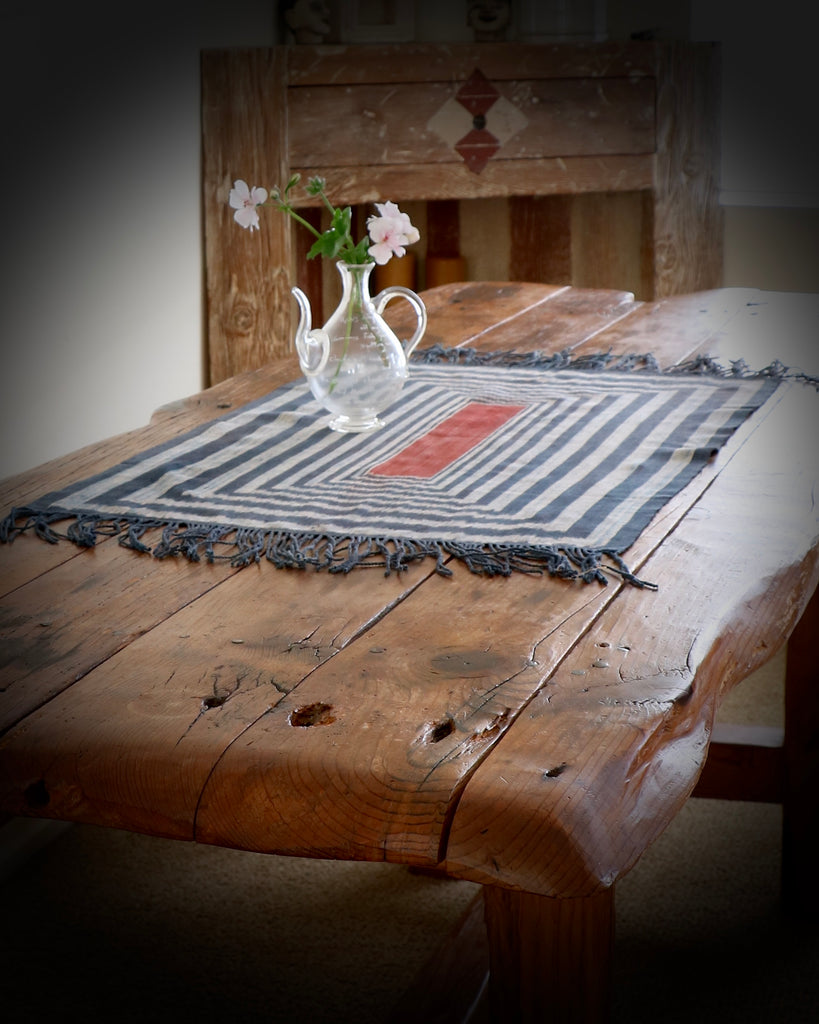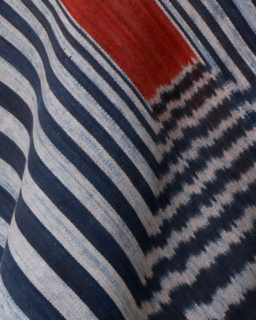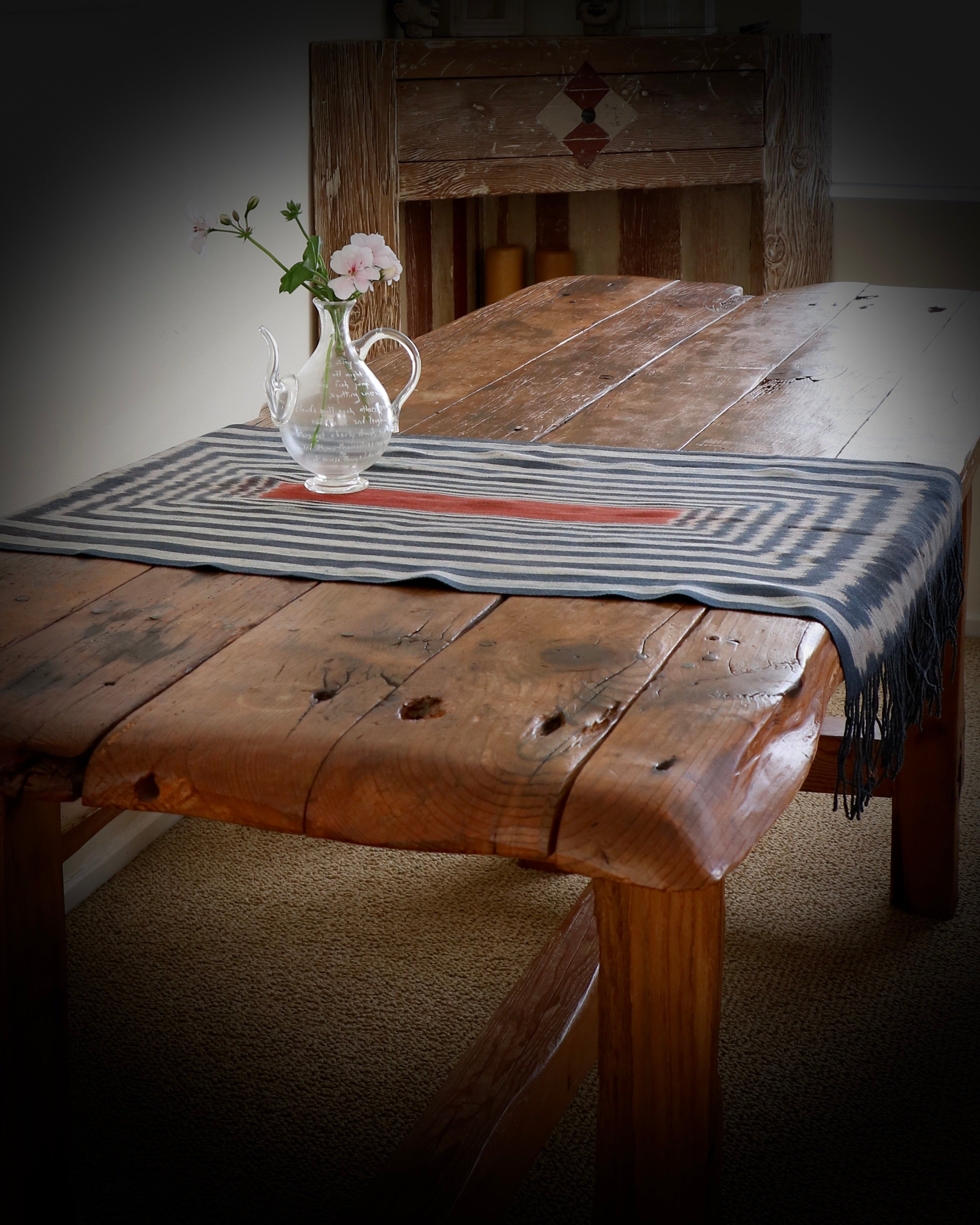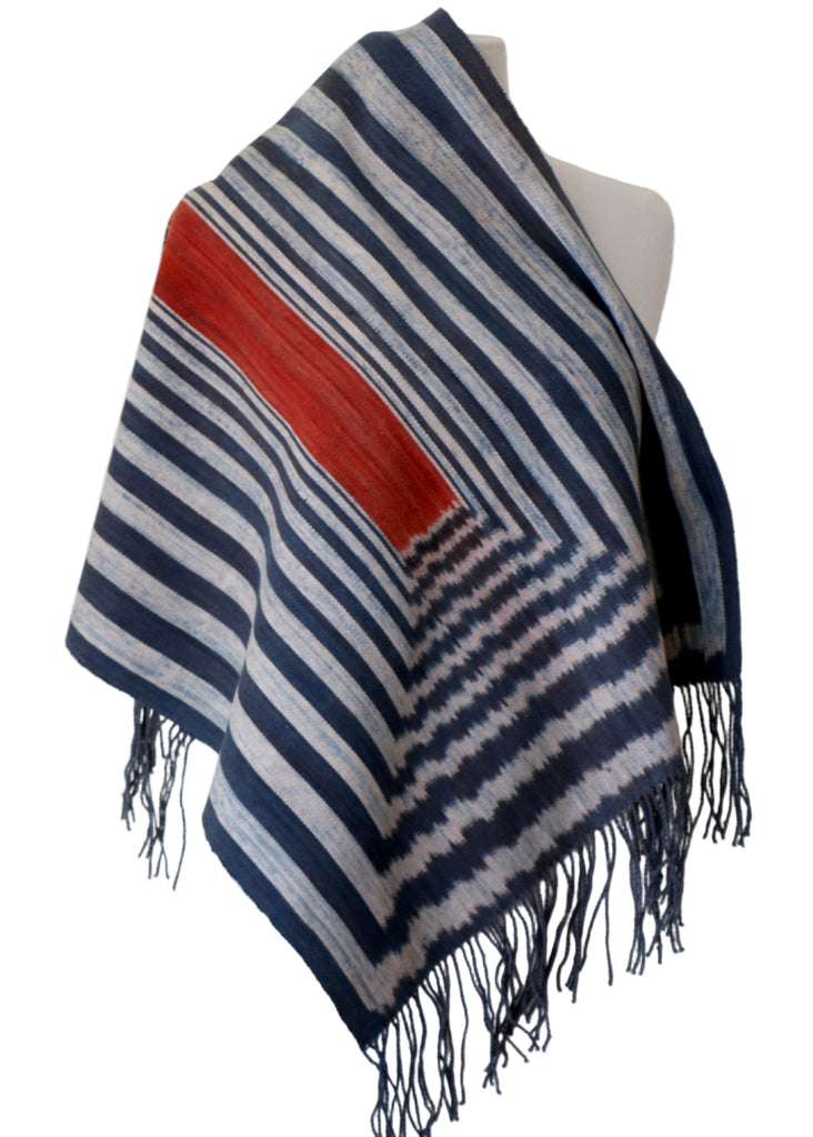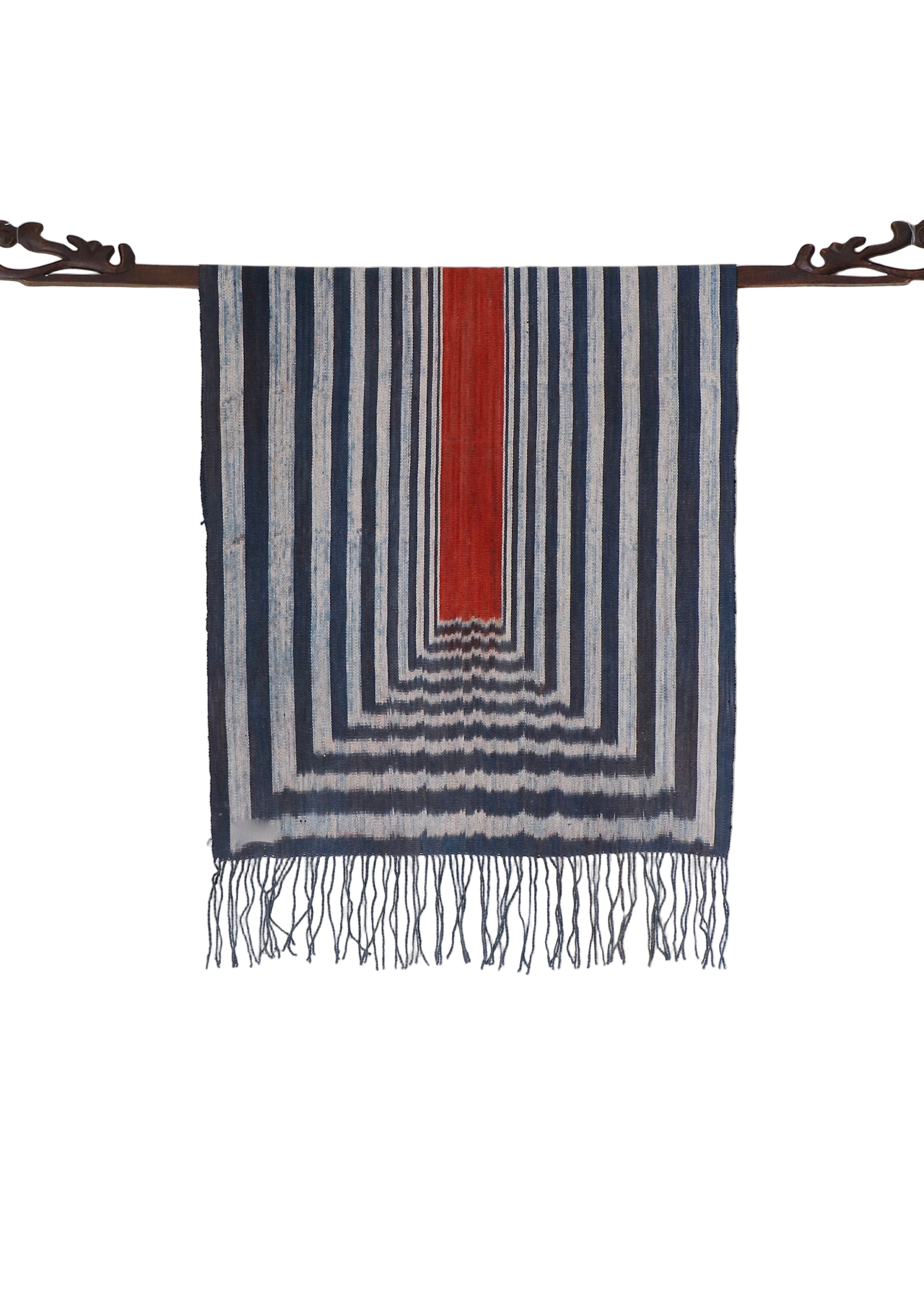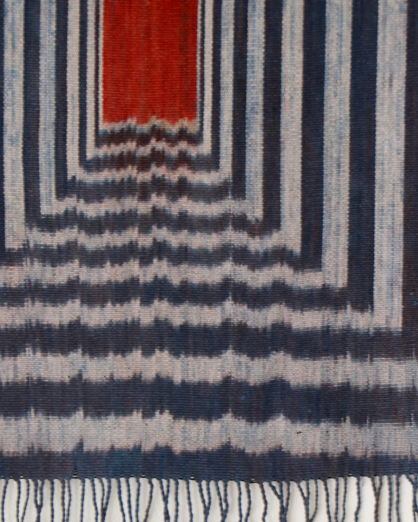 LoU created a beautiful series of ikats entitled 'Portals". They are entirely hand woven and hand dyed with all natural morinda citrifolia and indigo dyes. Woven in the traditional way by master craftsmen on the Indonesian island of Sumba. They are wonderful when used as interior design elements such as wall hangings or bed throws or table runners and can also be worn as a unique fashionable one of a kind wrap or shawl. LoU's modern motifs are innovative and breathtakingly beautiful.