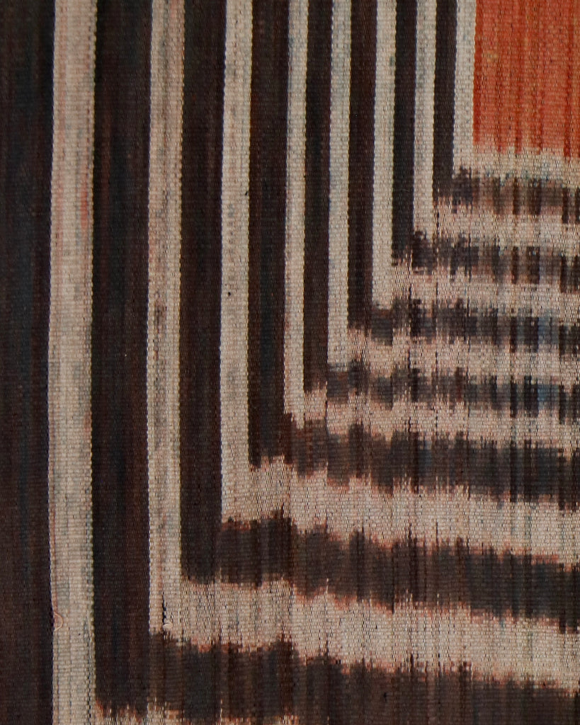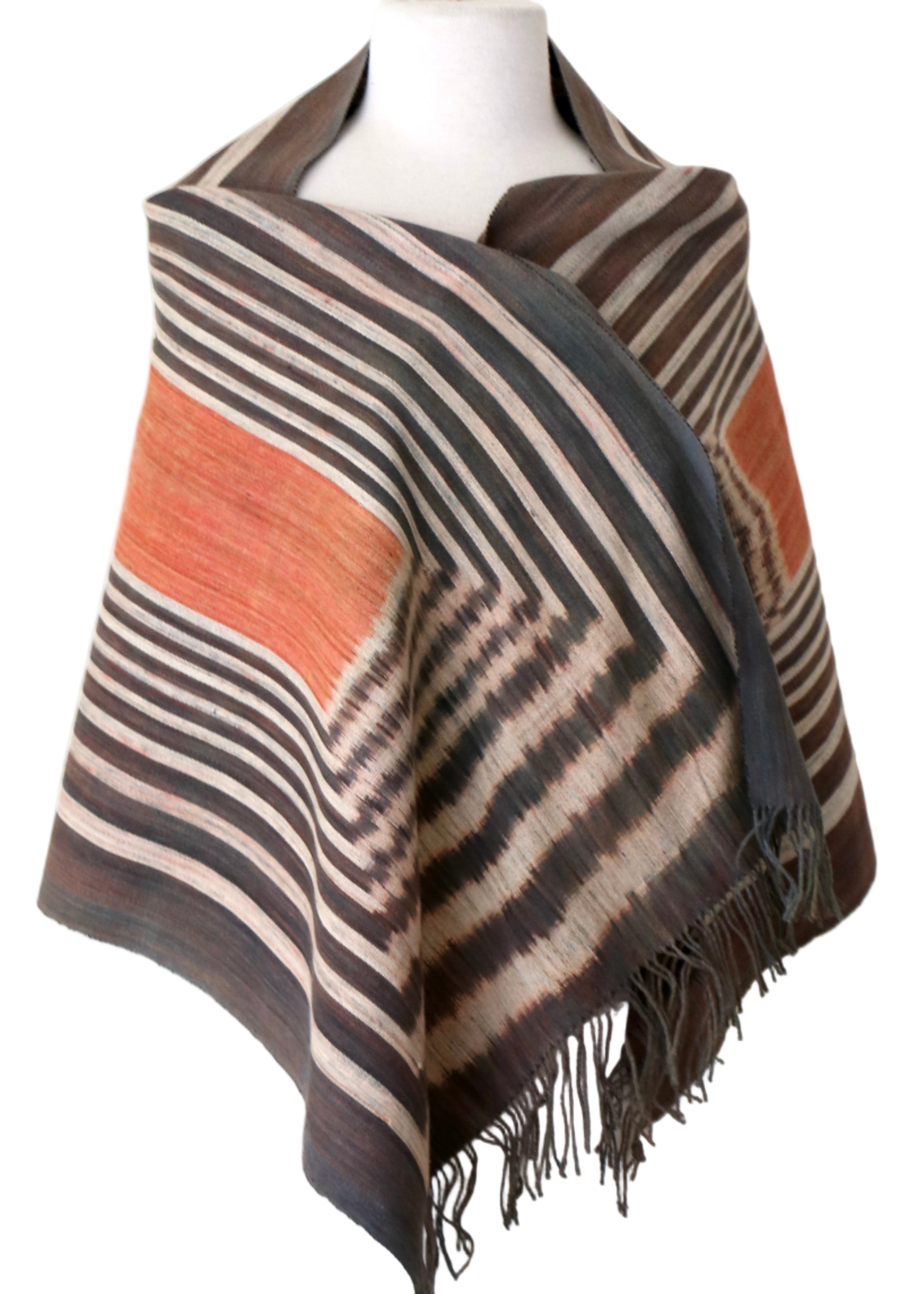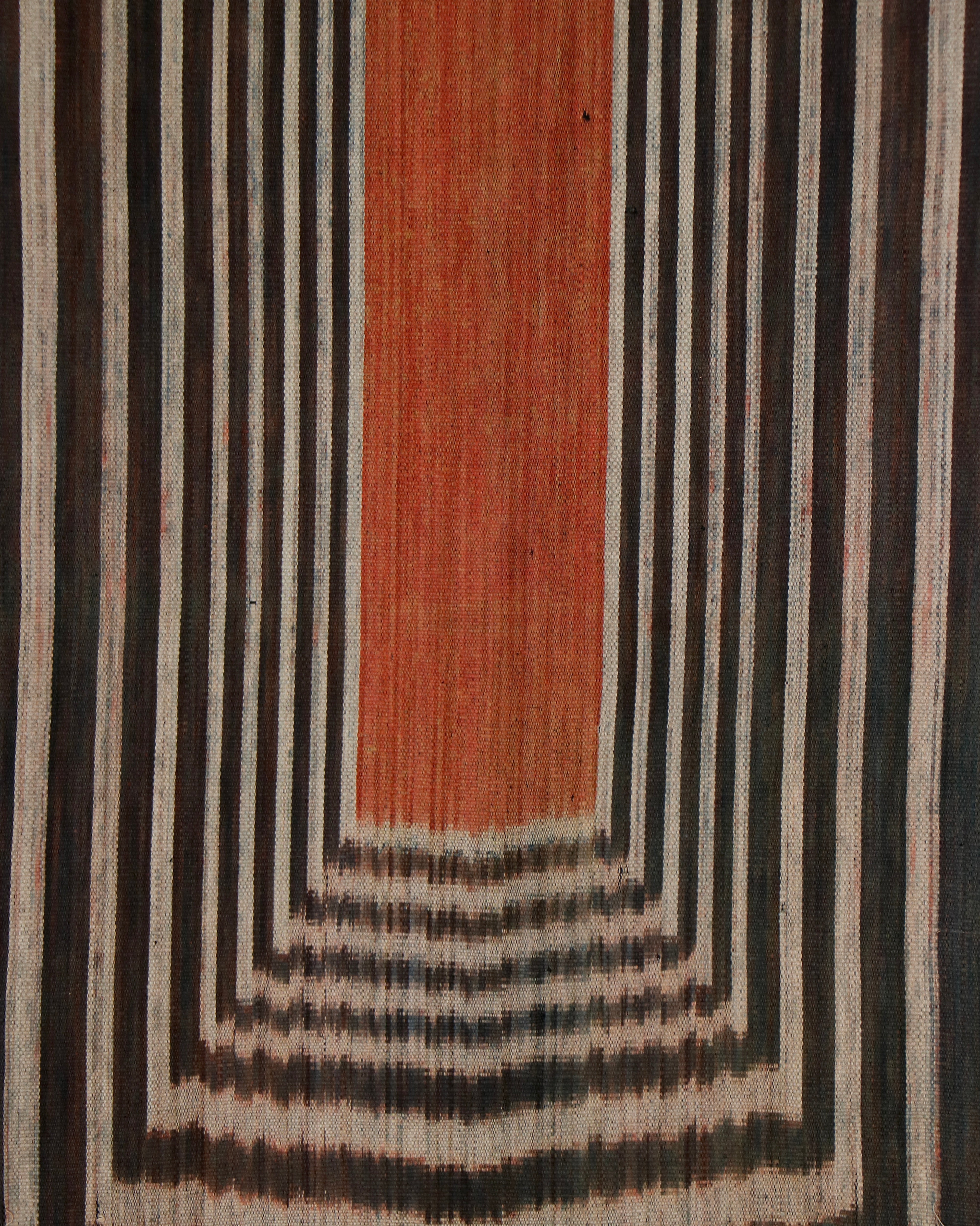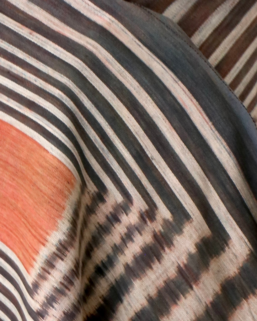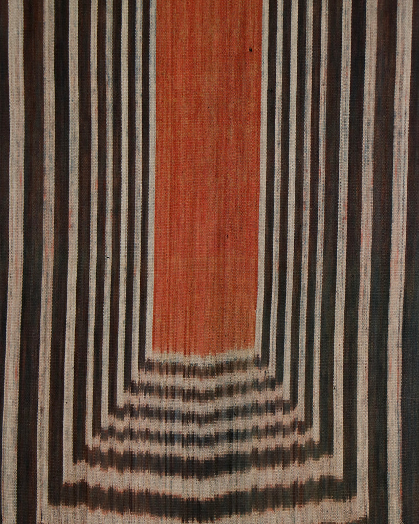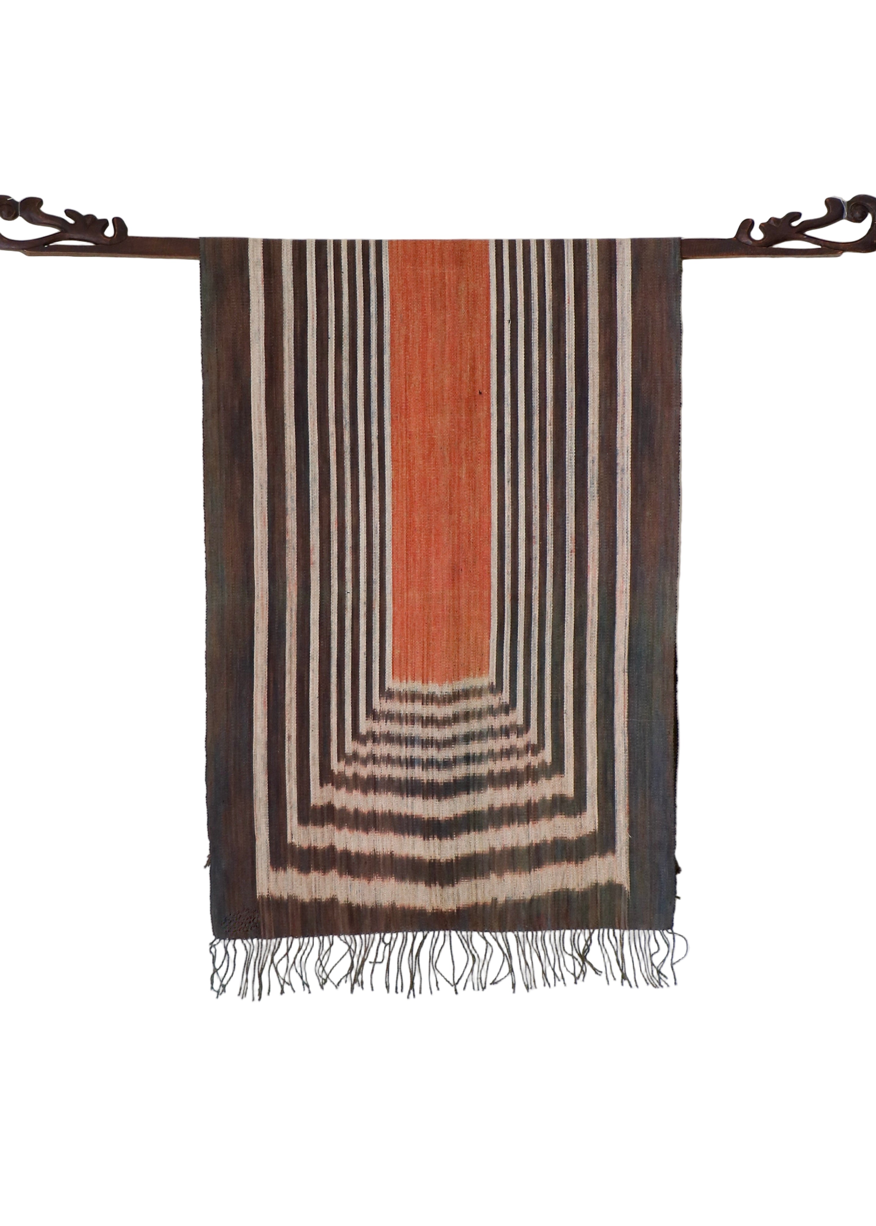 LoU created a beautiful series of ikats entitled 'Portals". They are entirely hand woven and hand dyed with all natural morinda citrifolia and indigo dyes. Woven in the traditional way by master craftsmen on the Indonesian island of Sumba. They are wonderful when used as interior design elements such as wall hangings or bed throws or table runners and can also be worn as a unique fashionable one of a kind wrap or shawl. LoU's modern motifs are innovative and breathtakingly beautiful.