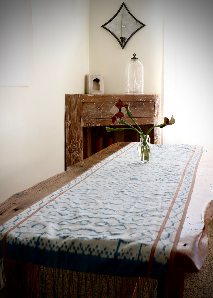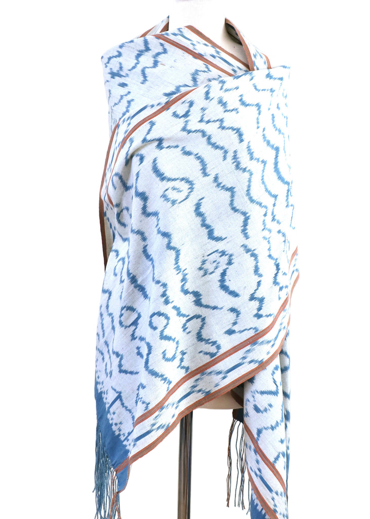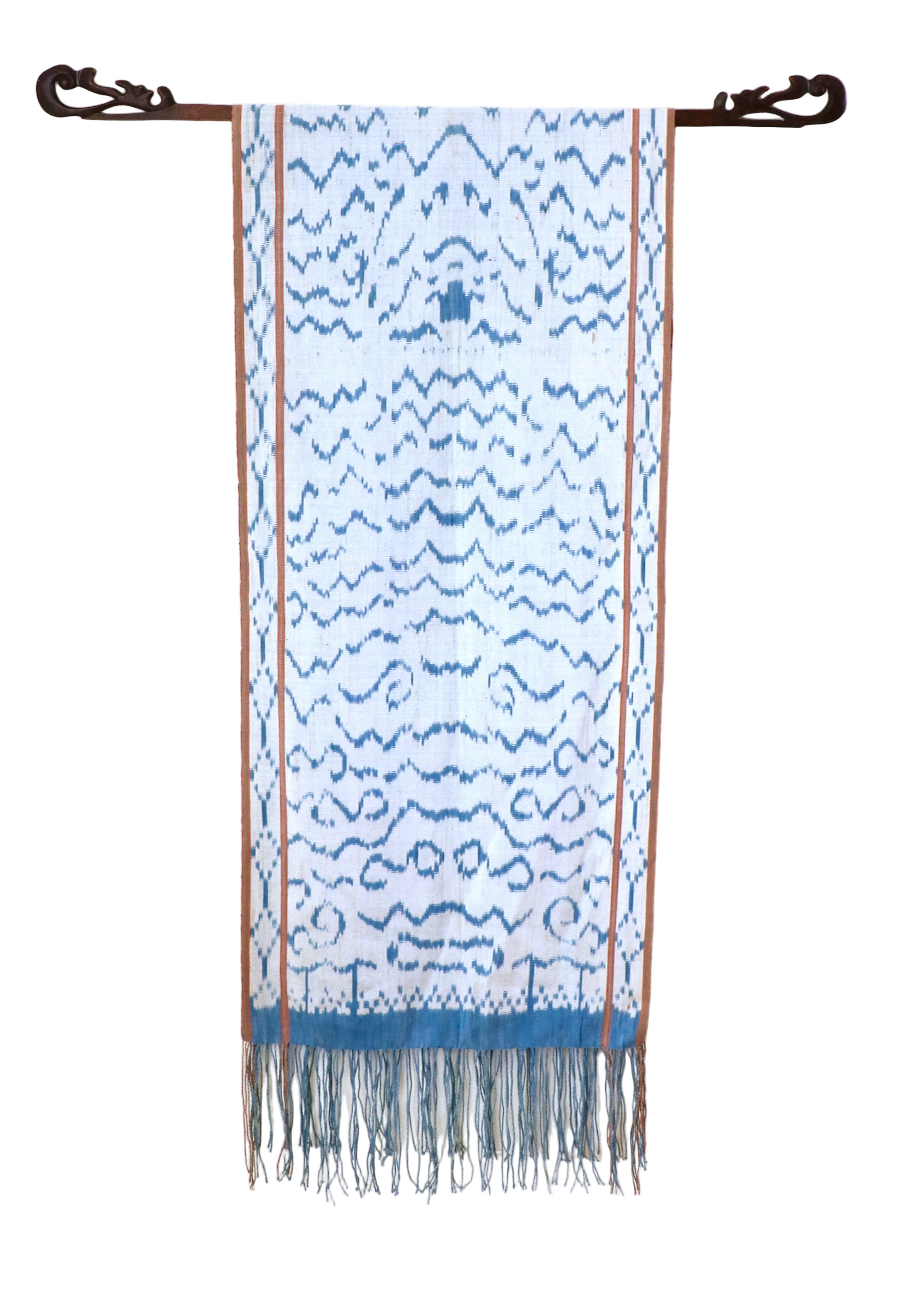 A fabulous 'tiger ikat' created on the island of Sumba in Indonesia. These textiles LoU created are heavily sought after. All natural dyes, hand woven natural fibers with a lusciously soft feel. Perfect as a wrap, a scarf or a dramatic wall hanging.