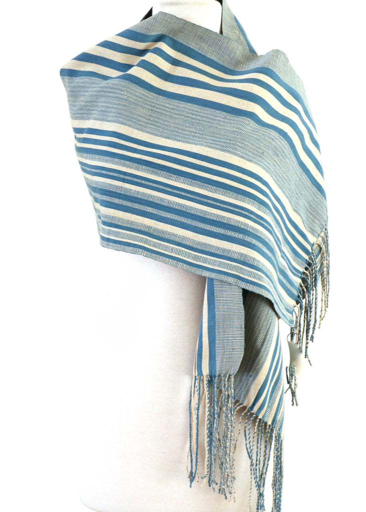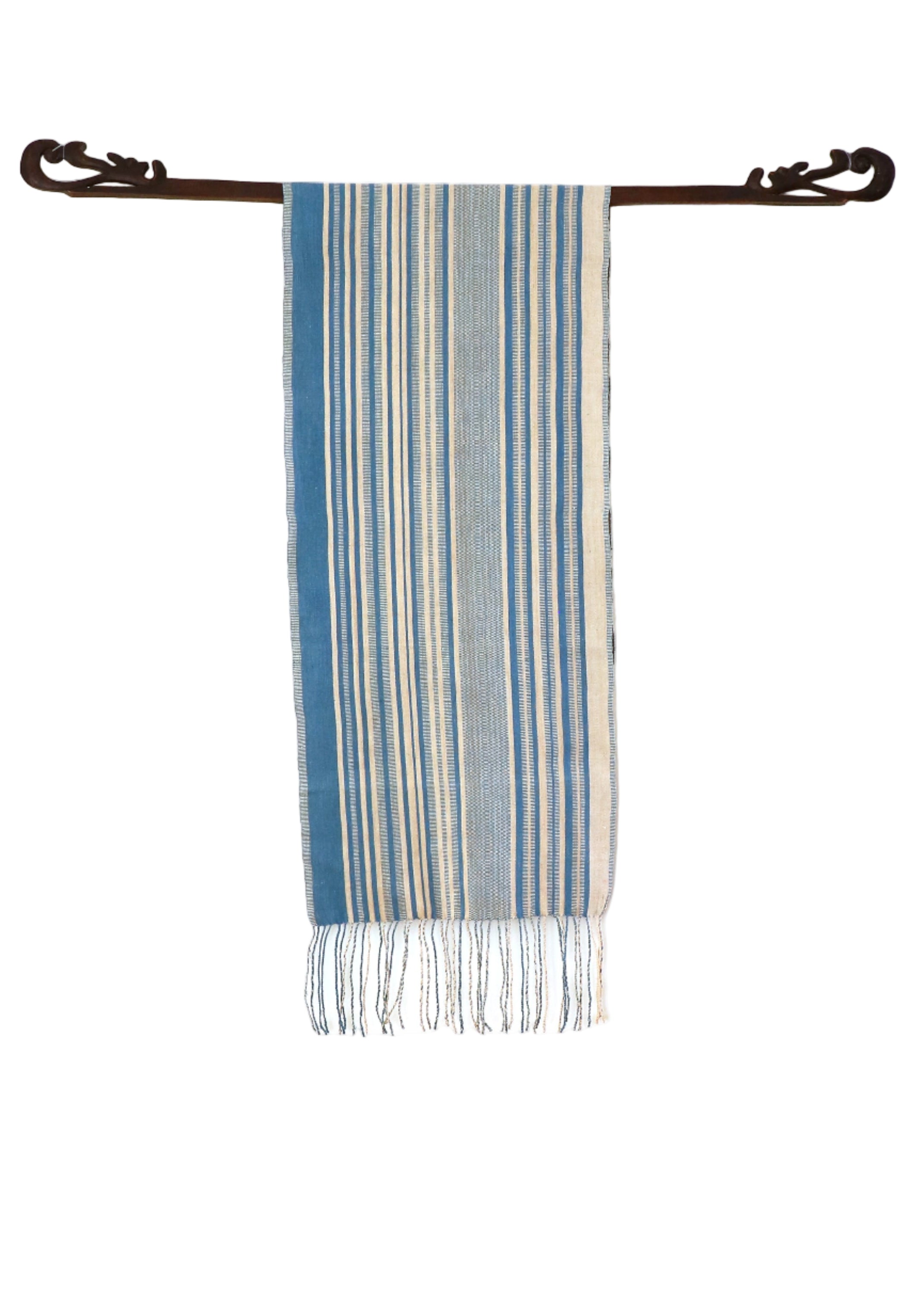 This textile from the collection was designed by LoU. Entirely hand woven and dyed in various locations throughout the Indonesian islands. LoU was inspired by the beauty and endless variations of the contemporary bar code system used in the process of creating the 'sku tag'