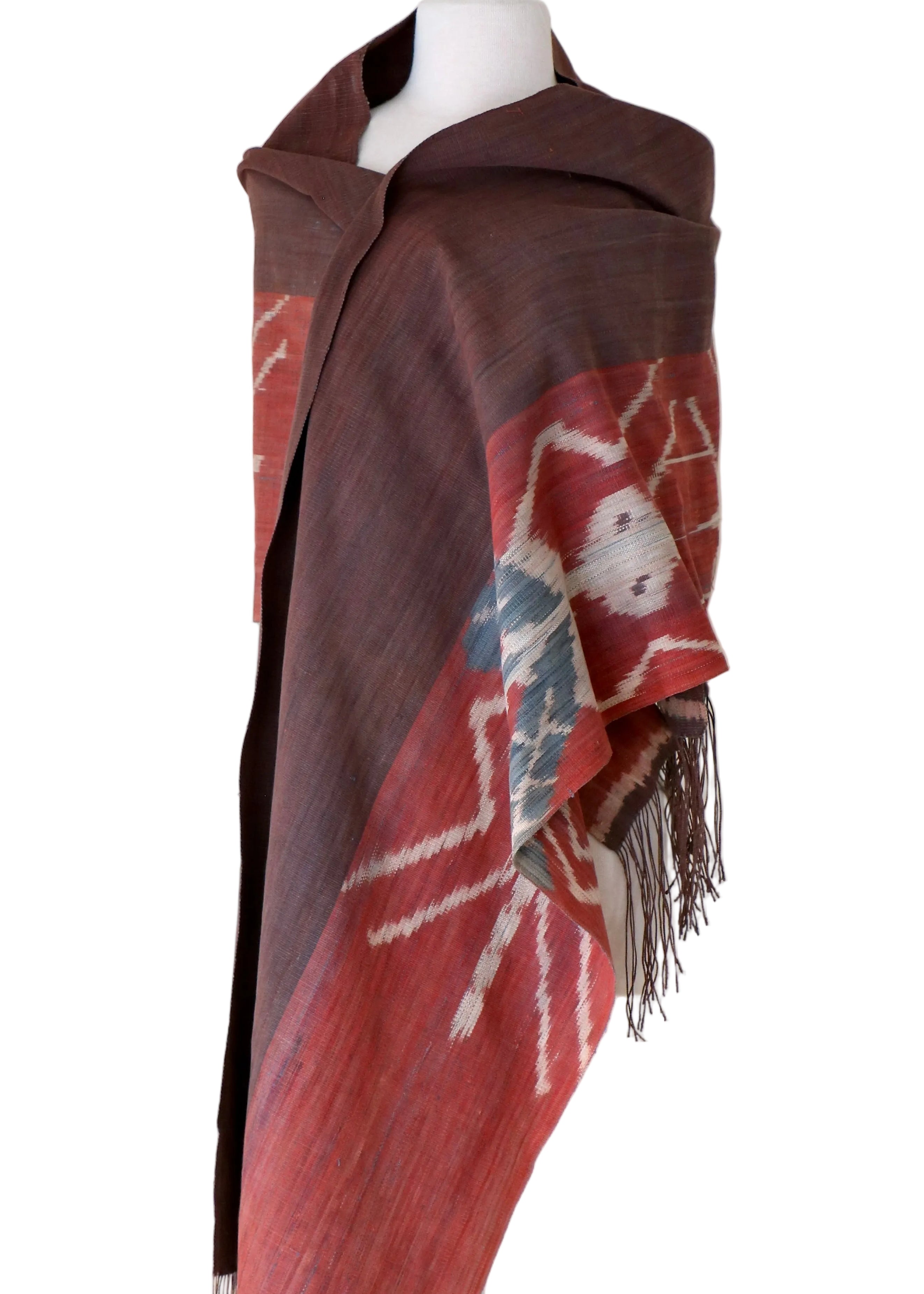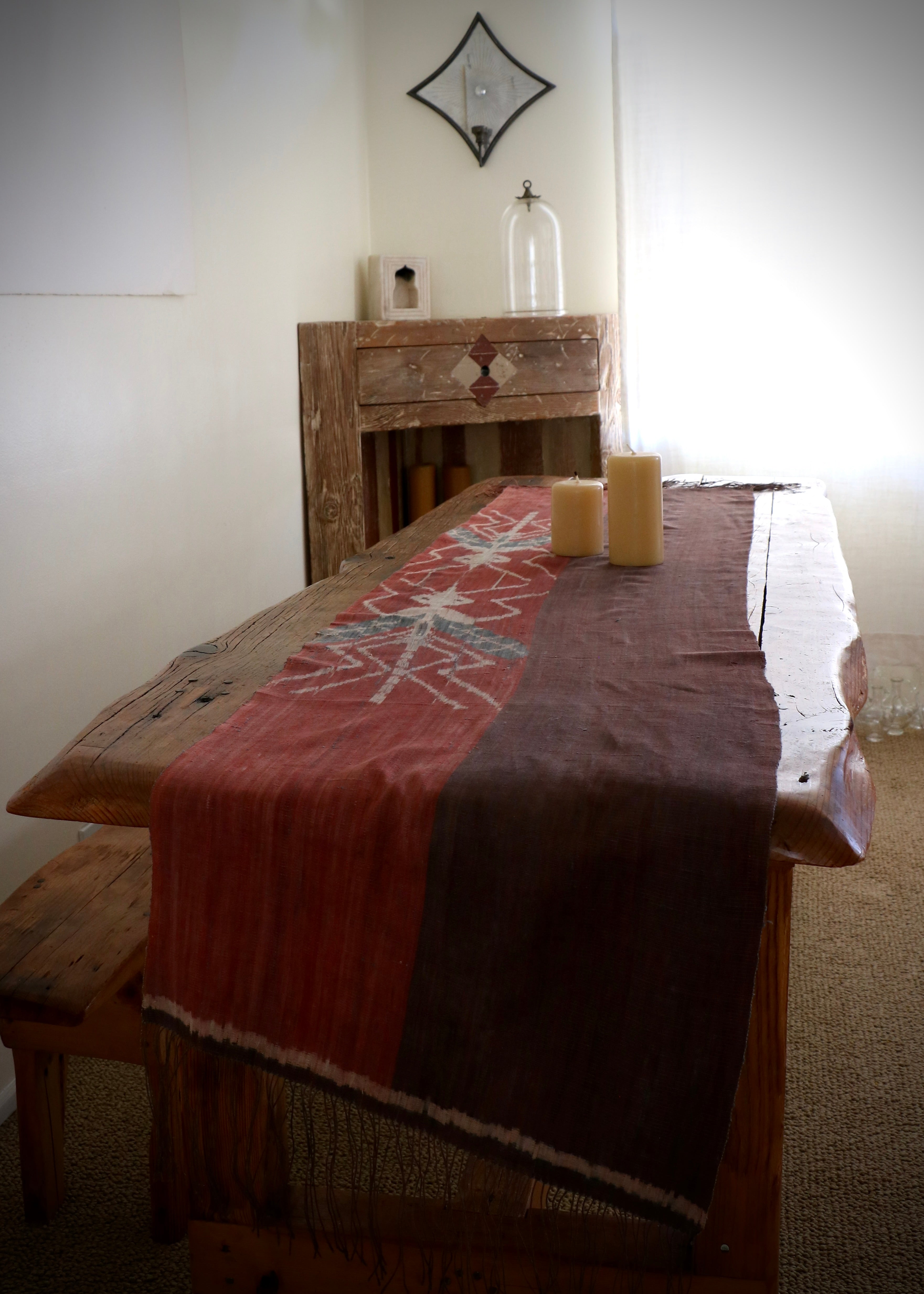 This particular textile collection of Ikats was designed by LoU and created by master artisans, over many decades, on the island of Sumba, Indonesia. The process of creating an Ikat is complex and labor intensive. Threads are meticulously tied (or bound together) then immersed in plant and mineral based dyes before being stretched taught on the loom. After that comes a mixture a tradition and magic, as the exquisite patterning in the cloth is revealed while being woven into one of LoU's contemporary designs. The Ikat below was created in a natural mud dye