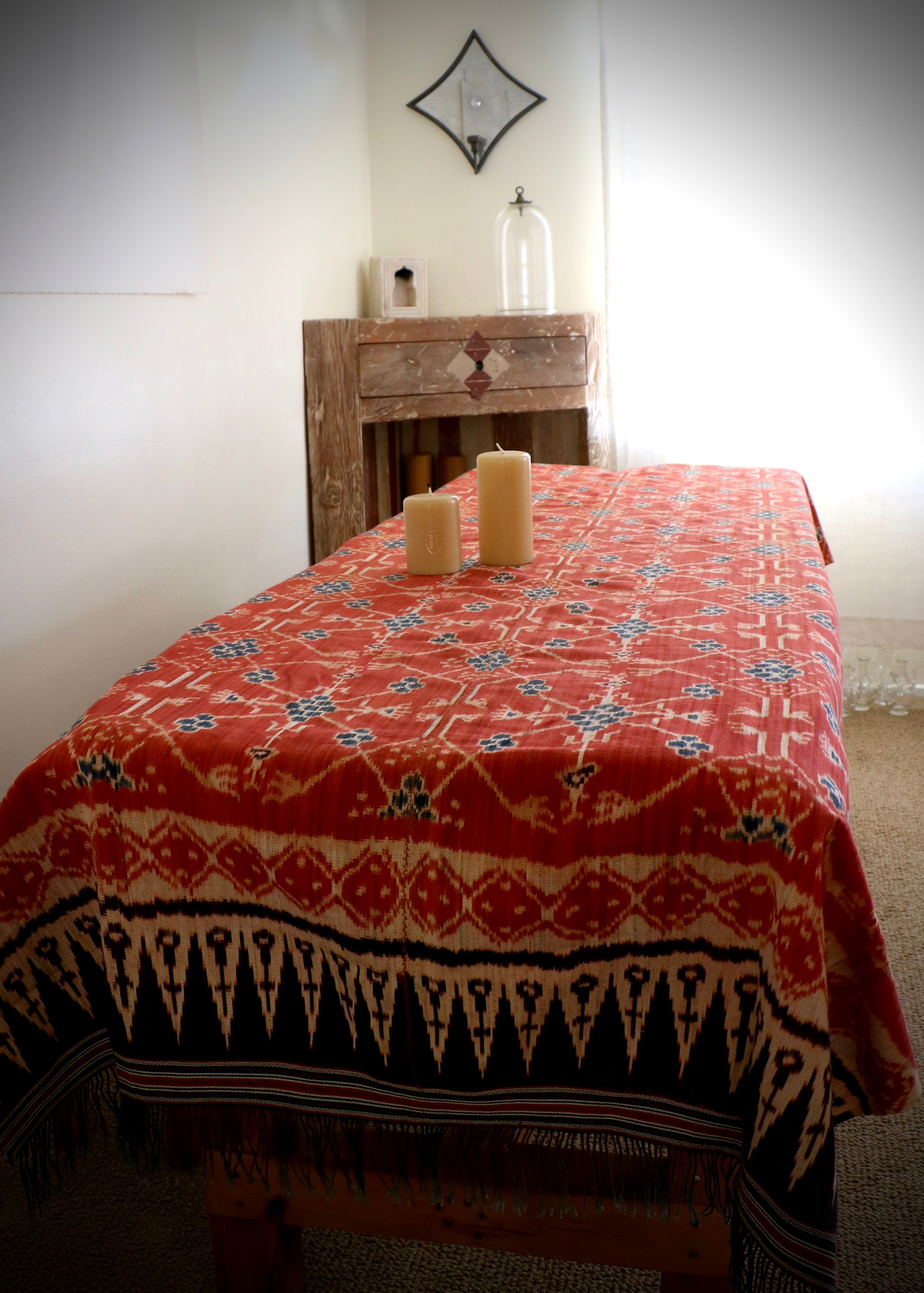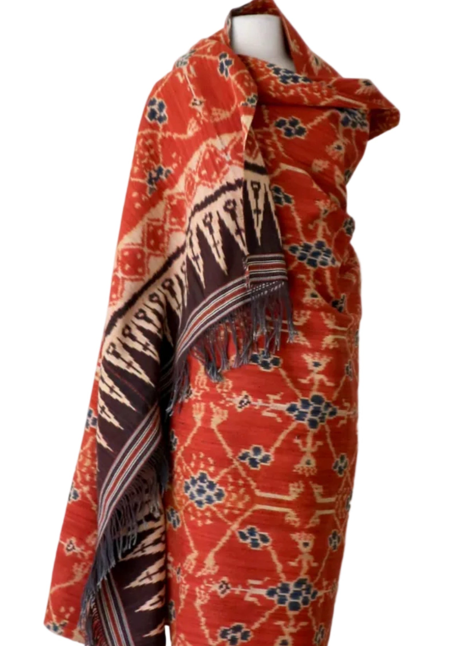 A one of a kind traditional ikat dyed with all natural dyes and woven entirely by hand in the Indonesian islands. These textiles were created in the late 20th century and early 21st century and have been safely stored away in LoU's collection for over 20 years. This treasured textile can be used in its original form or incorporated into pillows &/or used in other applications as desired. These beautiful vintage ikats are true collectables.