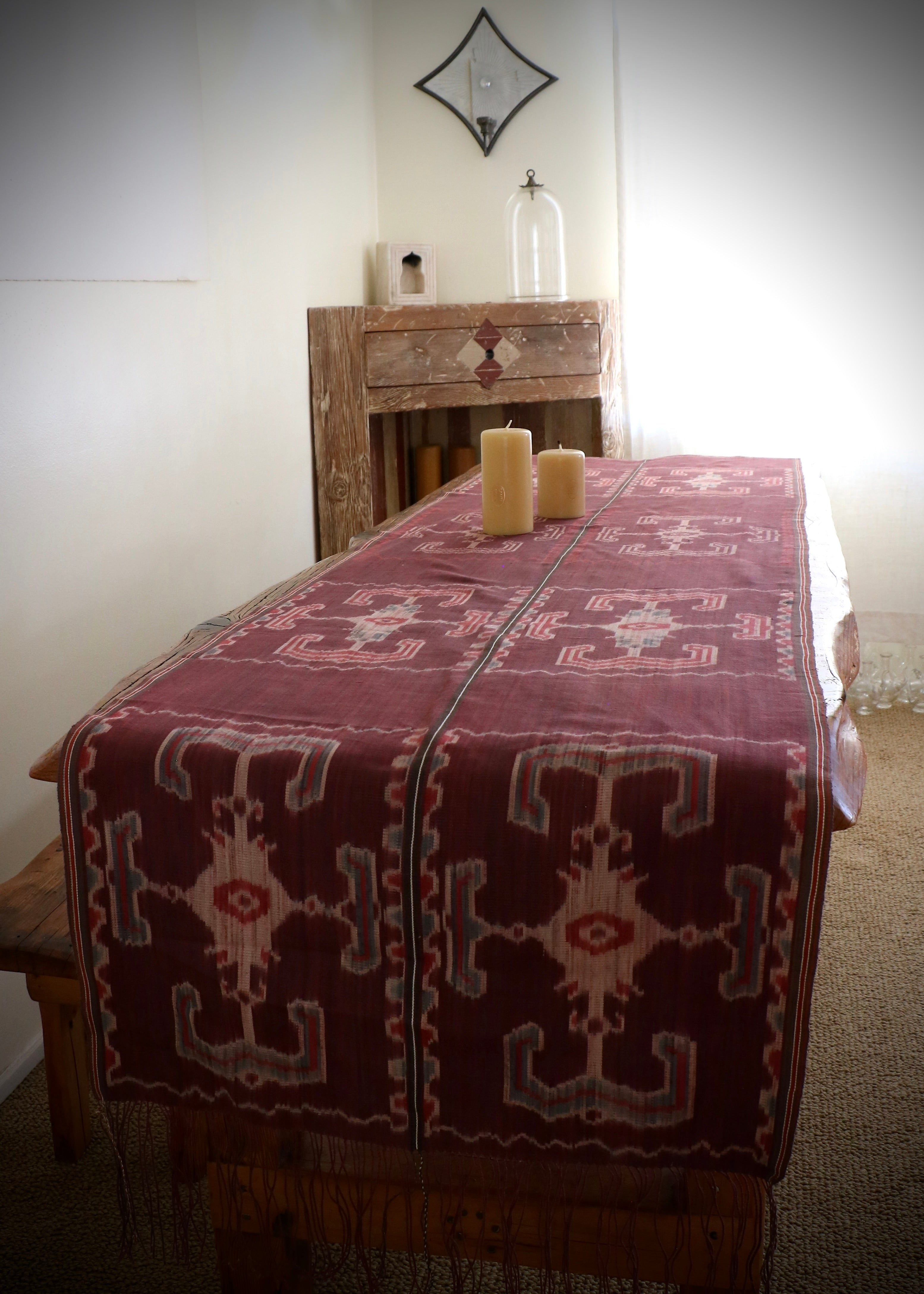 A one of a kind traditional ikat dyed with all natural dyes and woven entirely by hand in the Indonesian islands. These textiles were created in the late 20th century and early 21st century and have been safely stored away in LoU's collection for over 20 years. This treasured textile can be used in its original form or incorporated into pillows &/or used in other applications as desired. These beautiful vintage ikats are true collectables.