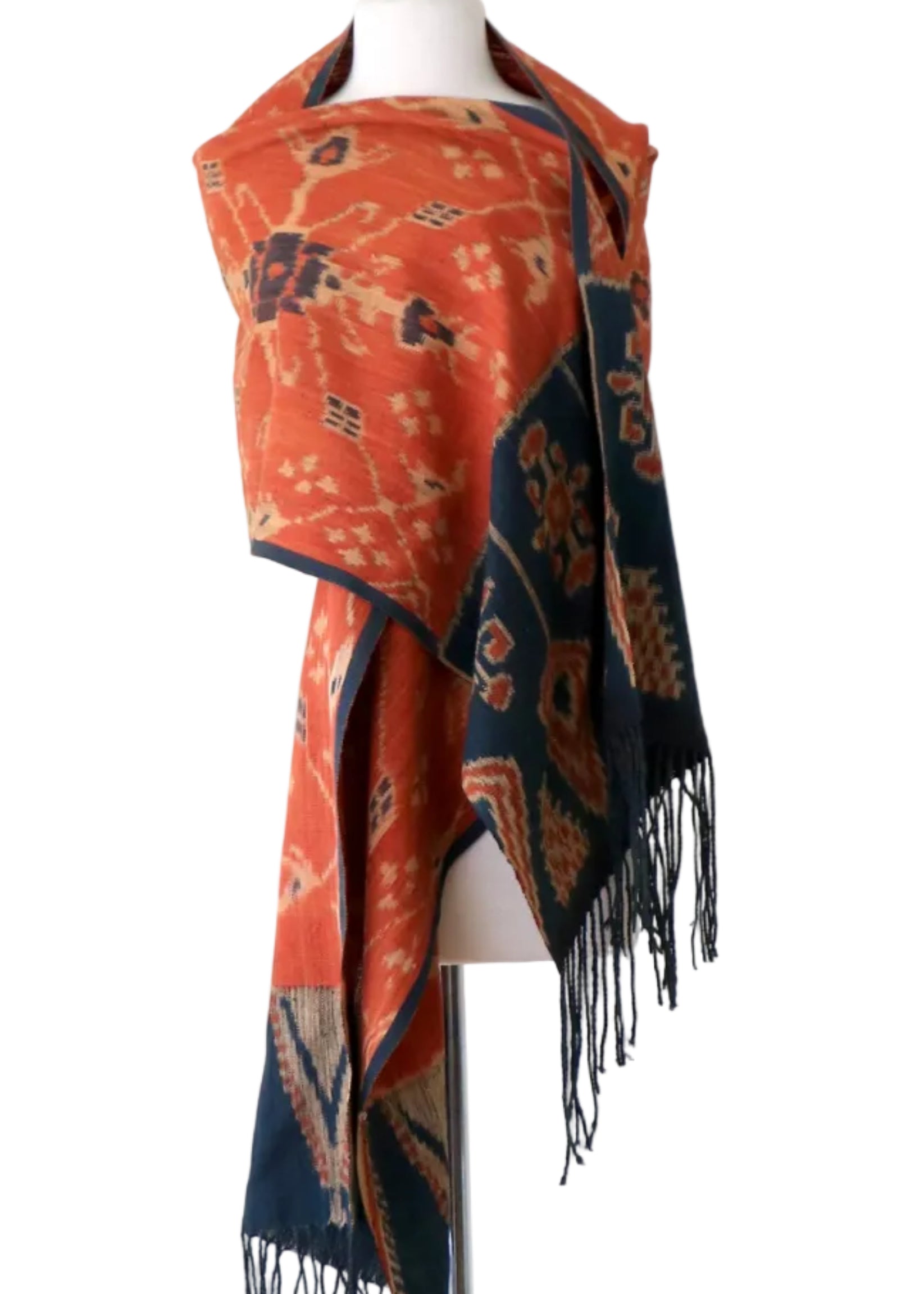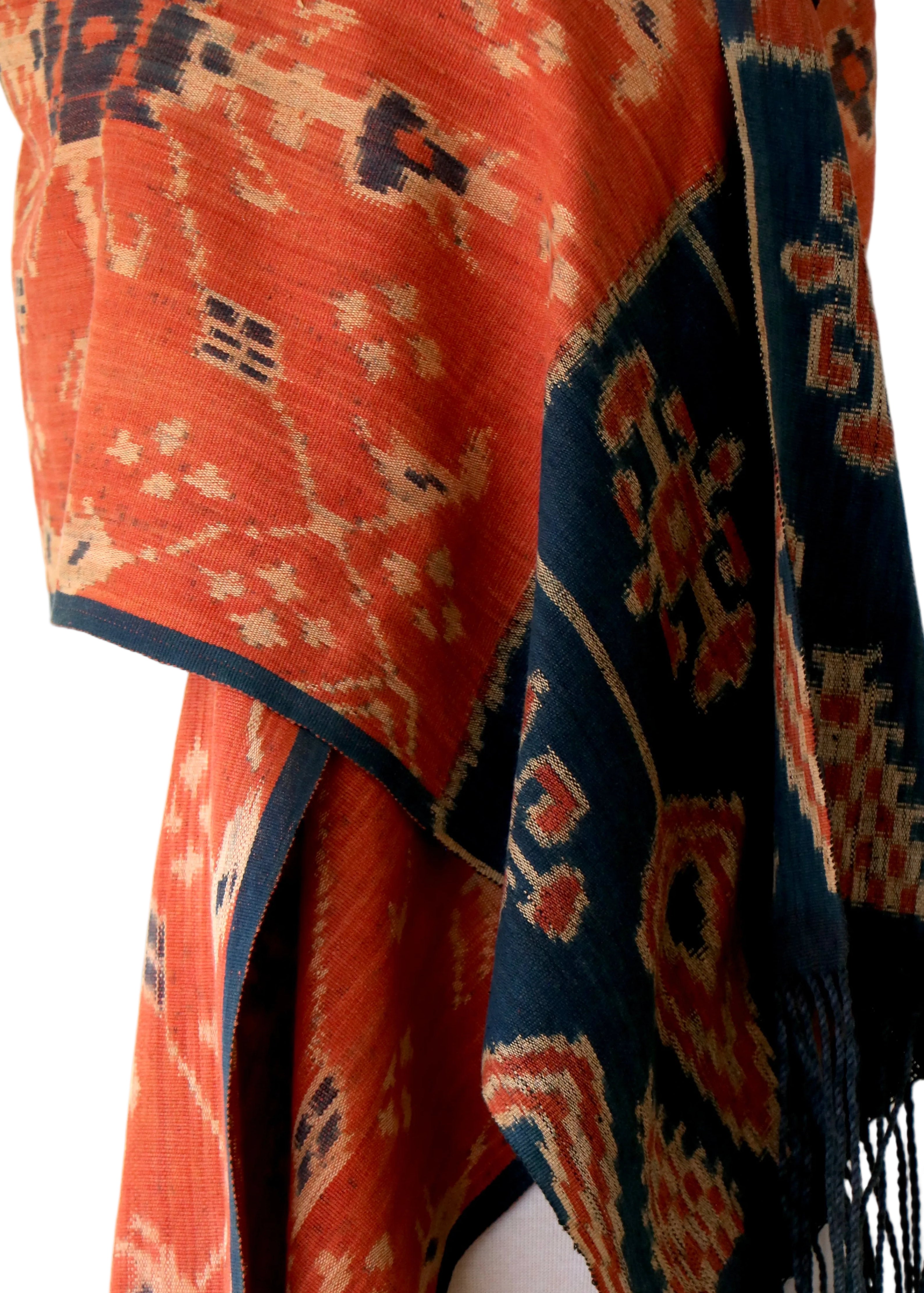 A one of a kind traditional ikat dyed with all natural dyes and woven entirely by hand in the Indonesian islands. These textiles were created in the late 20th century and early 21st century and have been safely stored away in LoU's collection for over 20 years. This treasured textile can be used in its original form or incorporated into pillows &/or used in other applications as desired. These beautiful vintage ikats are true collectables.