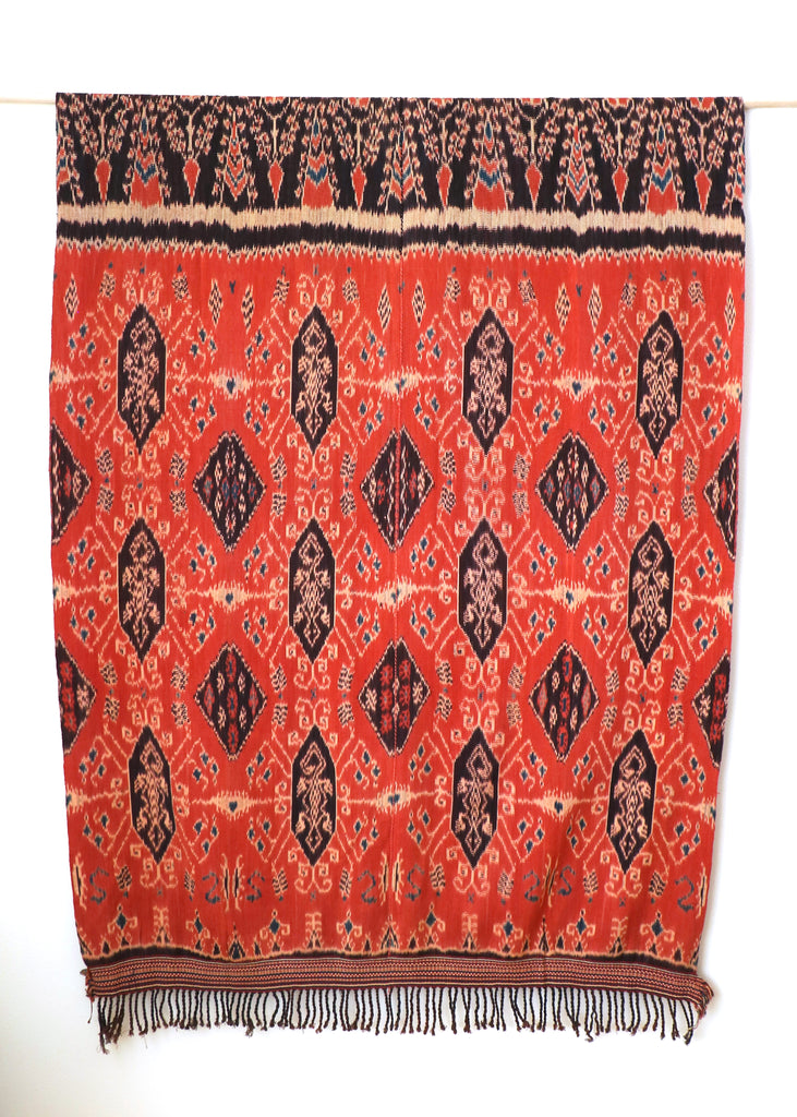 All of these treasured ikats were created solely with natural dyes. The ikat process used in these textiles are an entirely hand crafted technique from start to finish. The Indonesian culture is renown and celebrated for their expertise in weaving and for their fine ikat craftsmanship in particular. Many of these kinds of Indonesian ikats are in museums and personal collections worldwide. LoU's collection is a magnificent one indeed.
