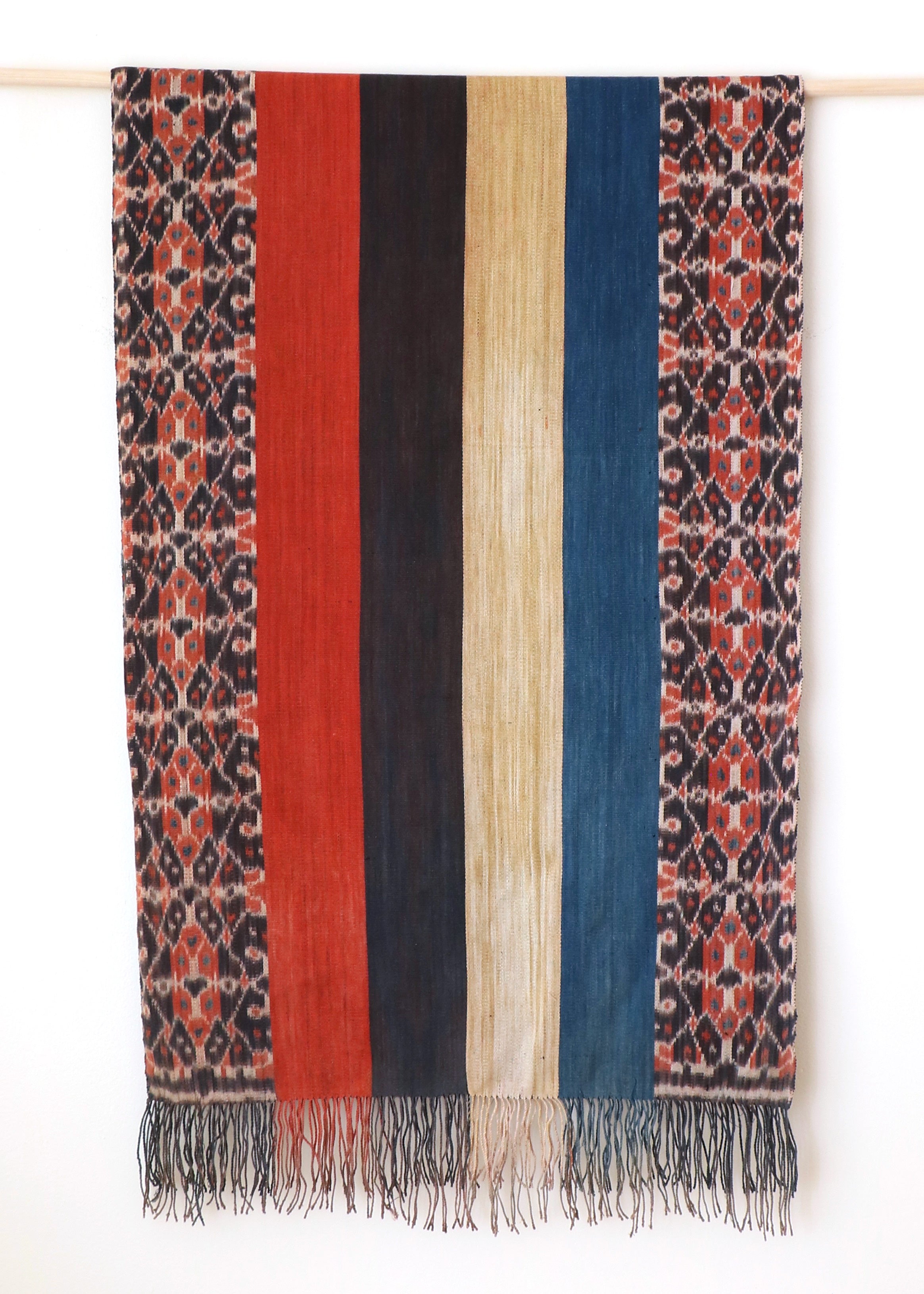 A one of a kind traditional ikat dyed with all natural dyes and woven entirely by hand in the Indonesian islands. These textiles were created in the late 20th century and early 21st century and have been safely stored away in LoU's collection for over 20 years. This treasured textile can be used in its original form or incorporated into pillows &/or used in other applications as desired. These beautiful vintage ikats are true collectables.