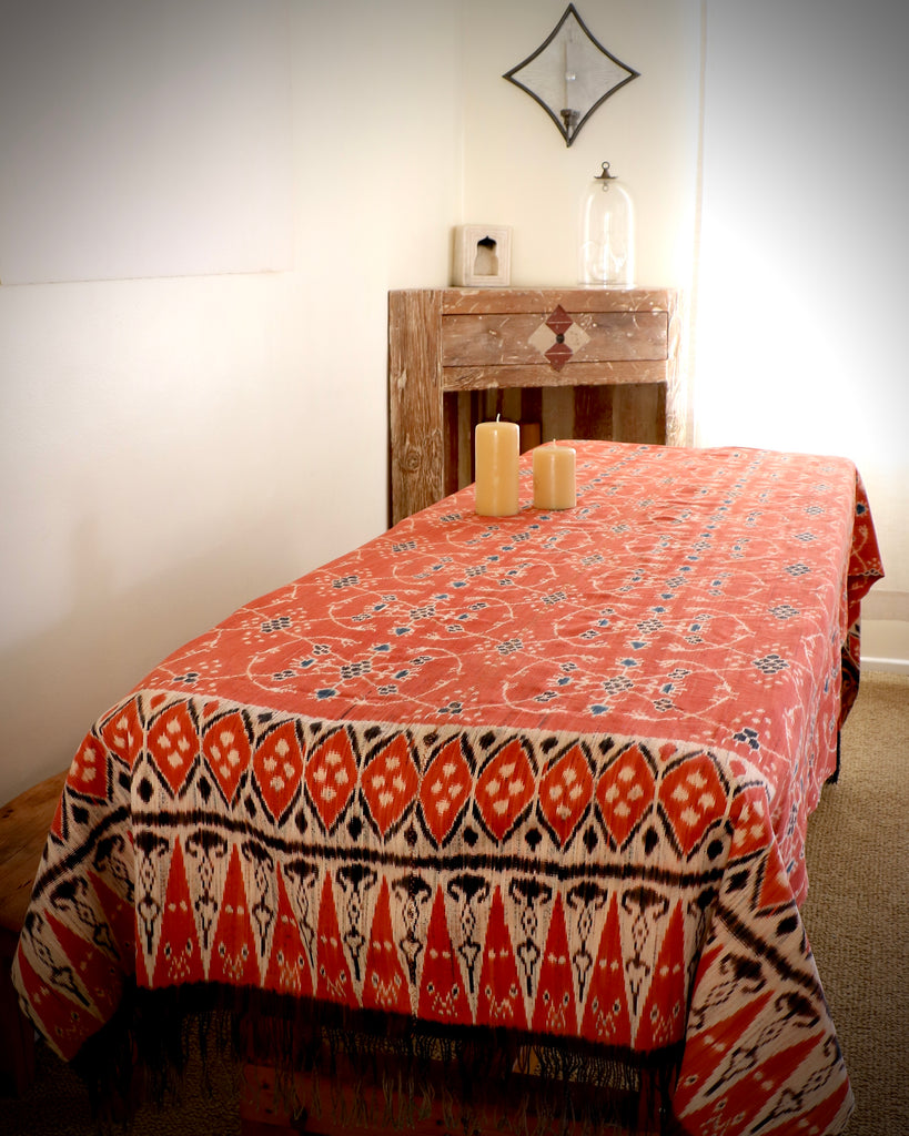 A one of a kind traditional ikat dyed with all natural dyes and woven entirely by hand in the Indonesian islands. These textiles were created in the late 20th century and early 21st century and have been safely stored away in LoU's collection for over 20 years. This treasured textile can be used in its original form or incorporated into pillows &/or used in other applications as desired. These beautiful vintage ikats are true collectables.