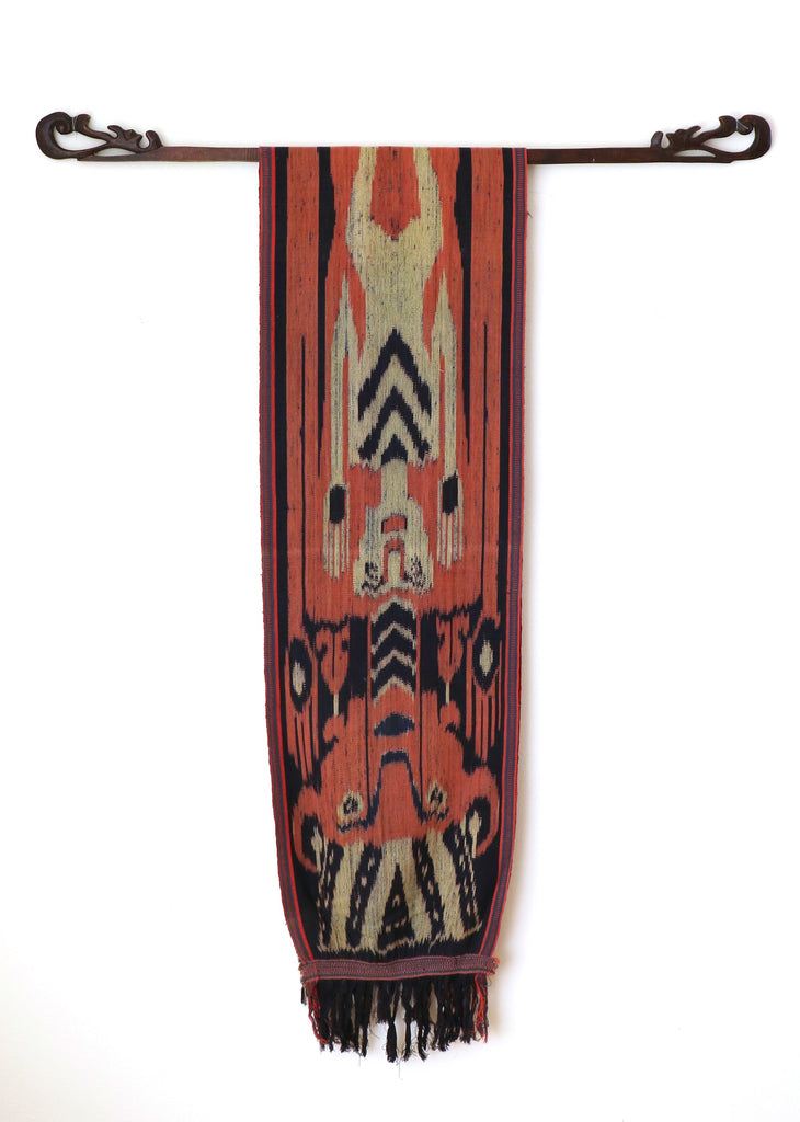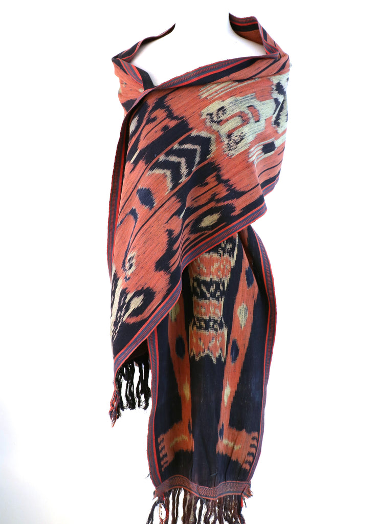 A one of a kind traditional ikat dyed with all natural dyes and woven entirely by hand in the Indonesian islands. These textiles were created in the late 20th century and early 21st century and have been safely stored away in LoU's collection for over 20 years. This treasured textile can be used in its original form or incorporated into pillows &/or used in other applications as desired. These beautiful vintage ikats are true collectables.