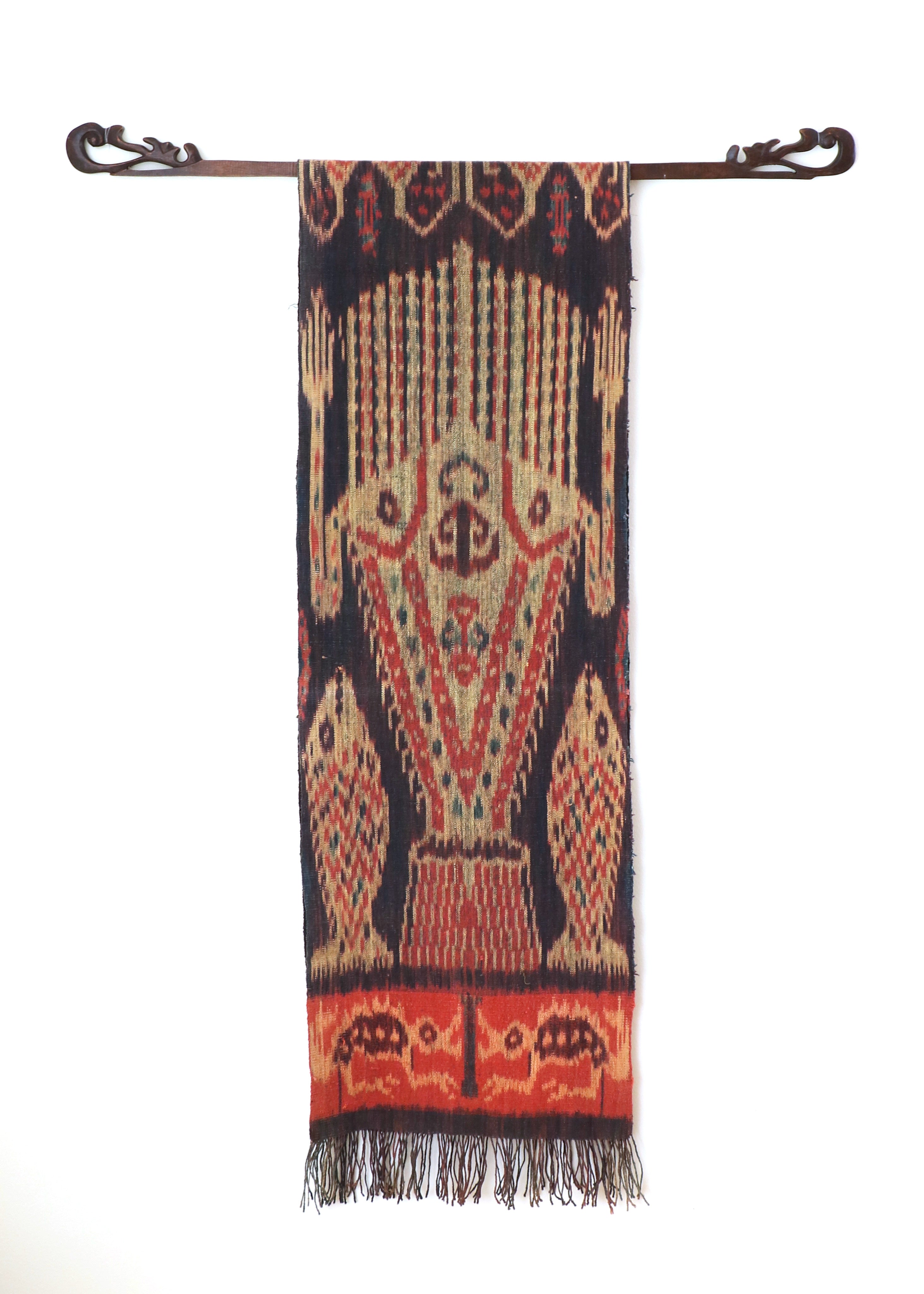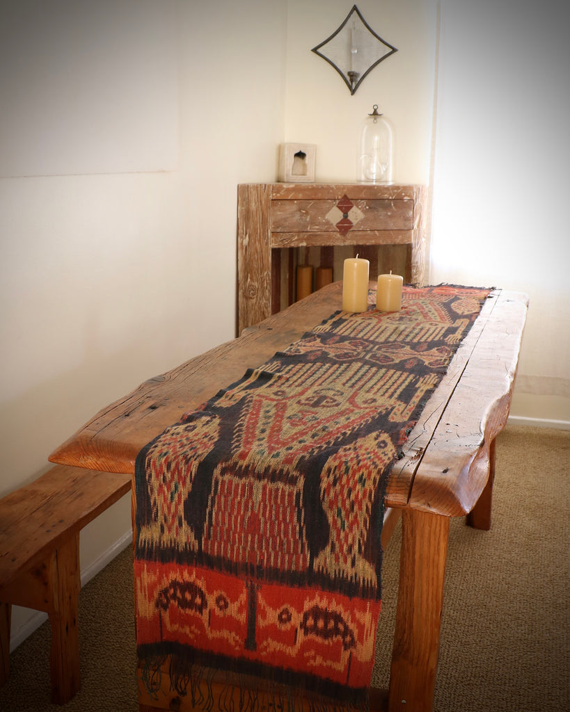 A one of a kind traditional ikat dyed with all natural dyes and woven entirely by hand in the Indonesian islands. These textiles were created in the late 20th century and early 21st century and have been safely stored away in LoU's collection for over 20 years. This treasured textile can be used in its original form or incorporated into pillows &/or used in other applications as desired. These beautiful vintage ikats are true collectables.