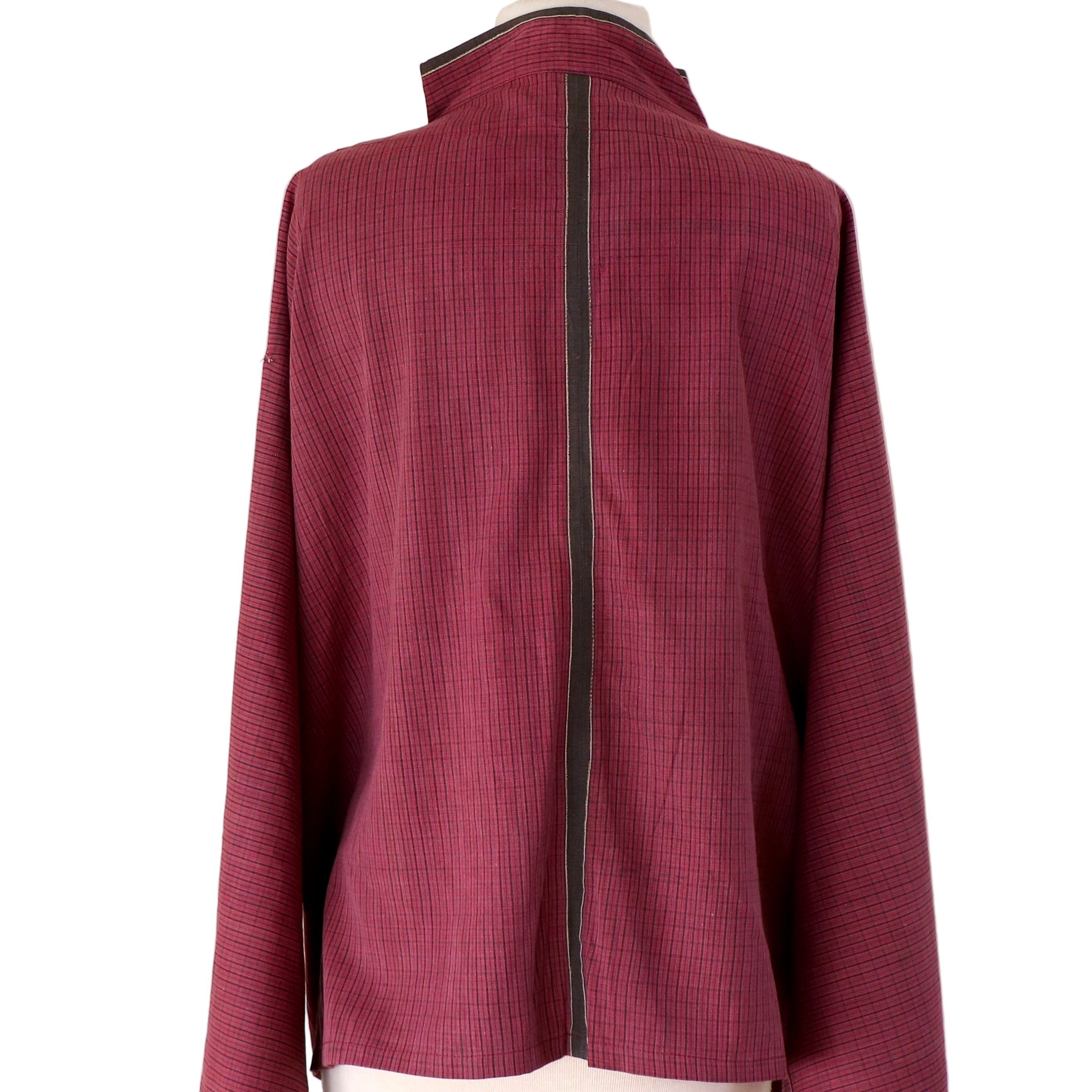 LoU was inspired to create a series of 'East West Jackets' working with a variety of wonderful textiles he collected along his travels throughout the Indonesian islands. He loved the concept that the same unique collar design could be worn as a nehru collar (as is traditionally worn in the east) and a turned down and open collar (as is traditionally worn in the west.) These jackets can be worn loosely or belted at the waist to give a more tapered appearance. All of these jackets are one of a kind and there are only a few remaining in the collection. They are LoU works of art and when they're gone.. they're gone.
