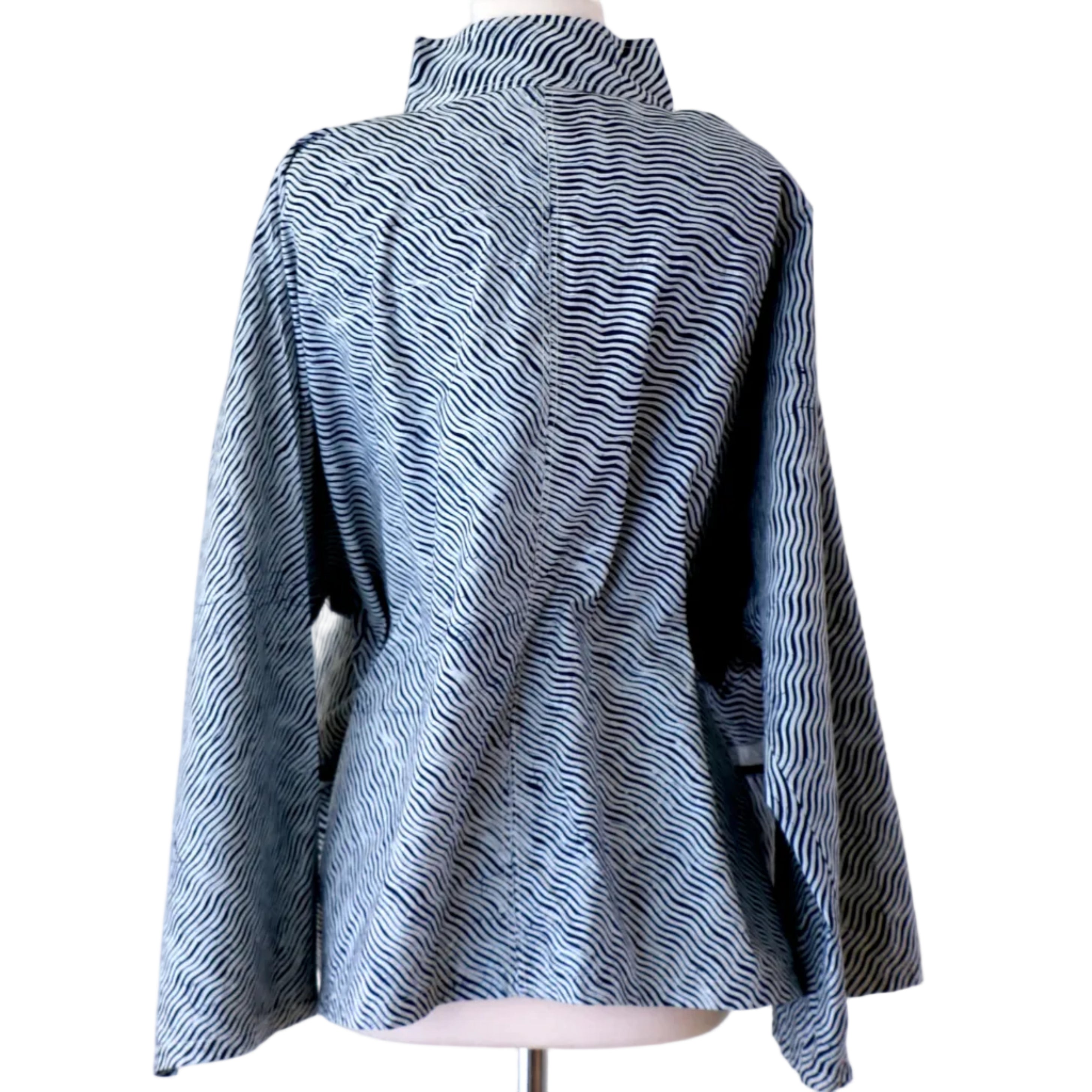This is a lovely jacket LoU created from his pure indigo dyed batik. The lines are wonderful and the fit spectacular. A true one of a kind.
