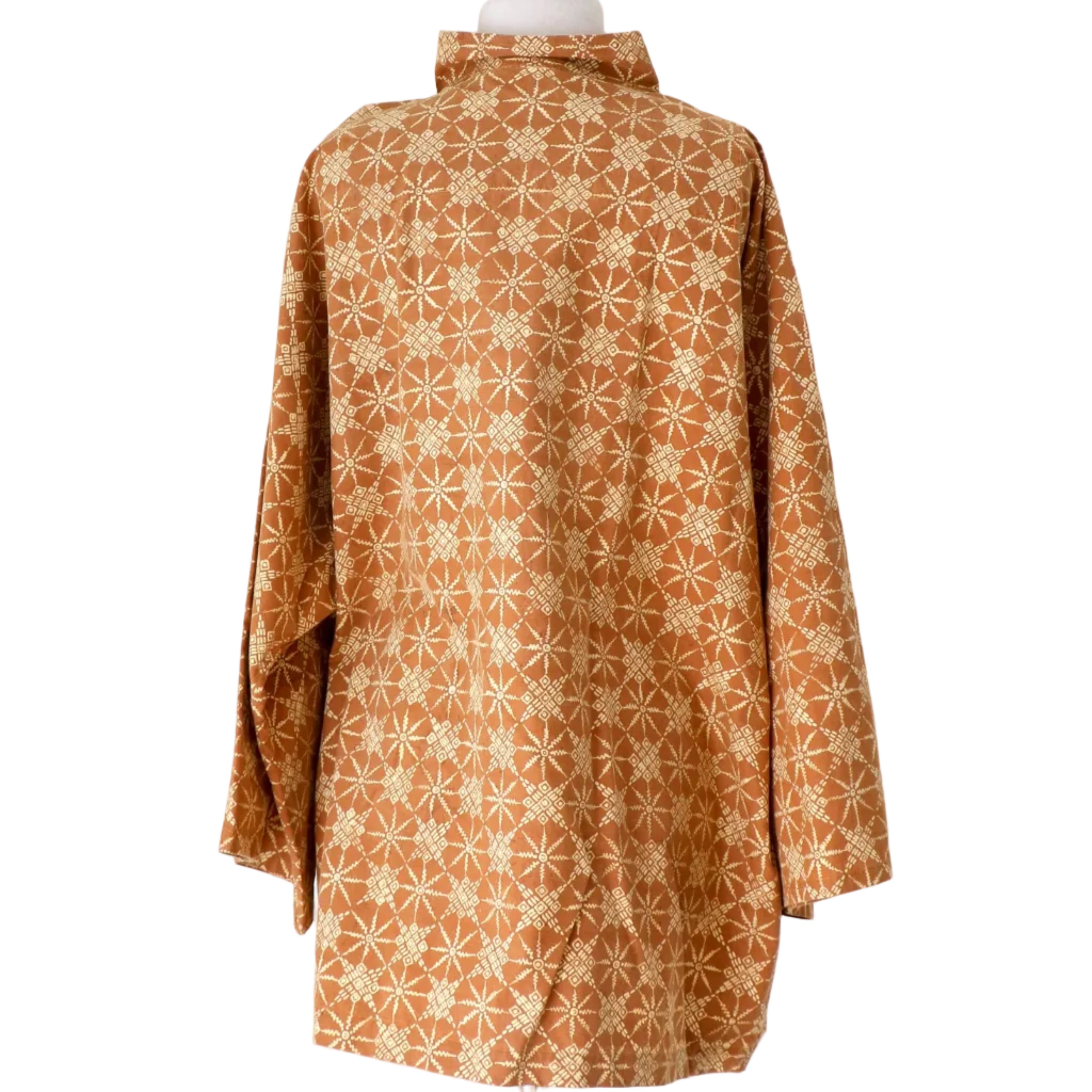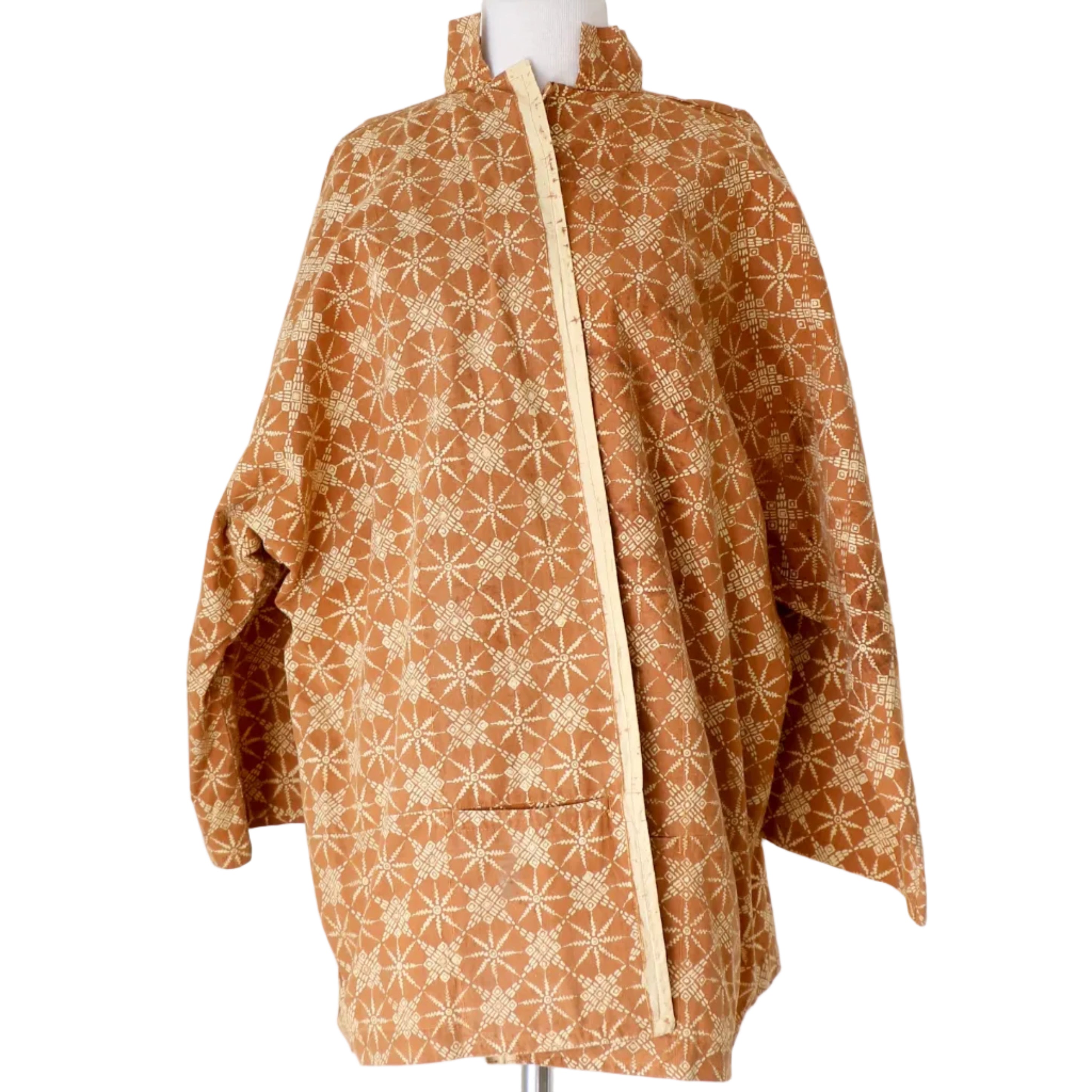 This particular jacket was created by LoU from a traditional batik that he collected. It has a wonderful trim and beautiful details.