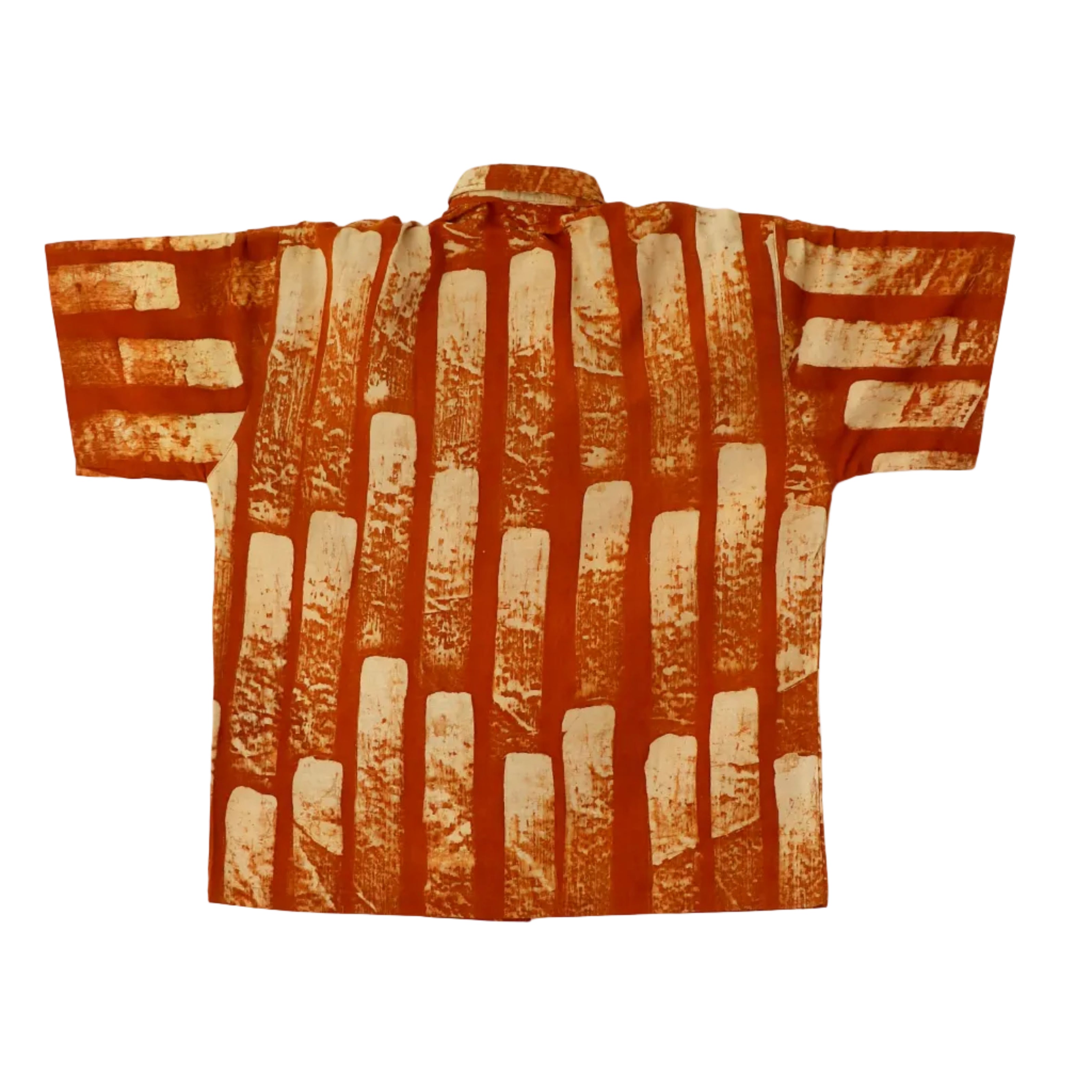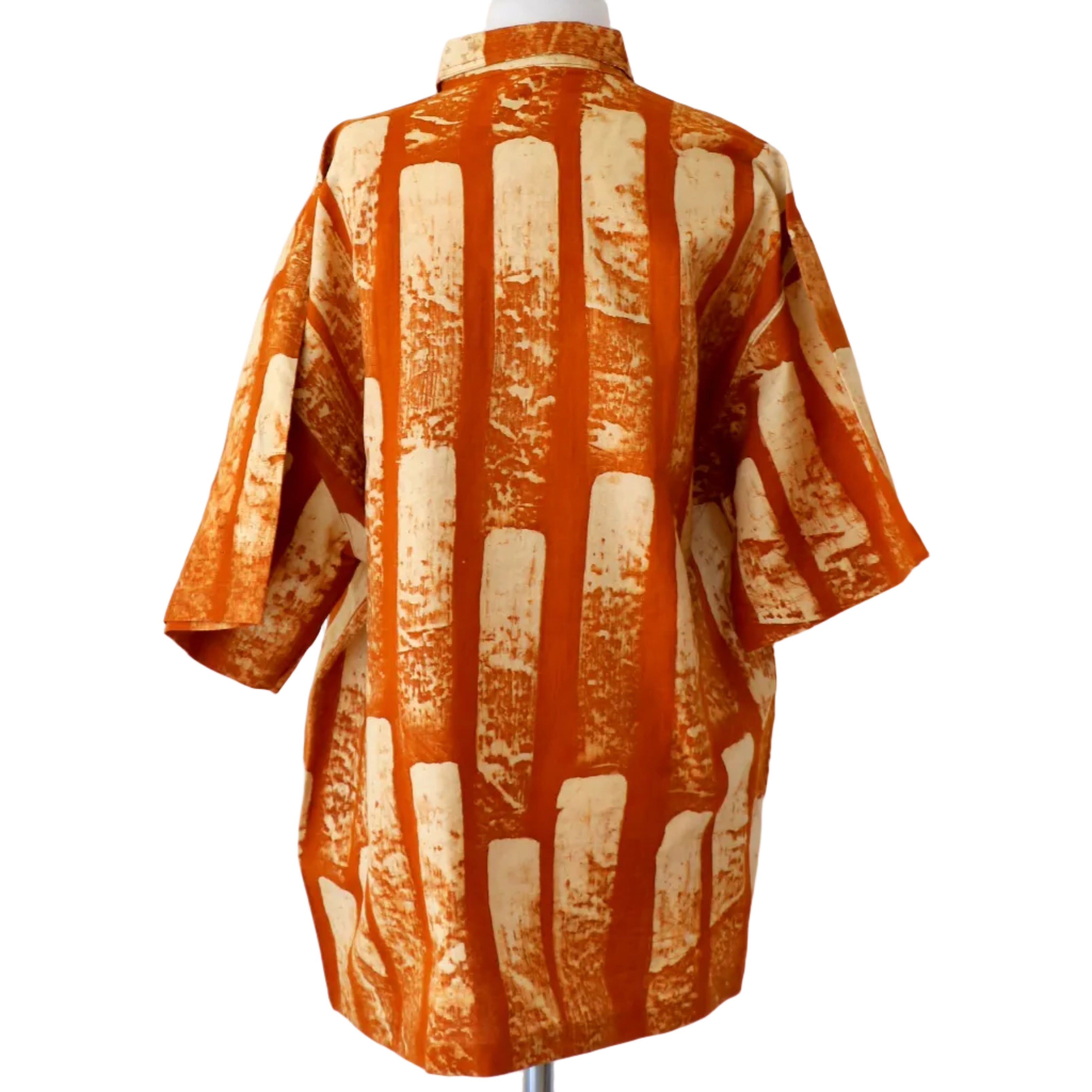 This is a wonderful soga dyed brush stroke batik transformed into a shirt by LoU.